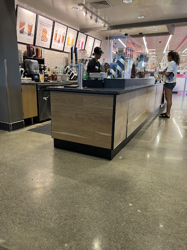 I went in this afternoon to grab a quick iced coffee and it was absolutely PACKED in Target, including the Sbux line. Three workers and a line of six to eight people and a full cafeteria area with tons of people waiting for drinks. As I stood waiting in line, I watched Danny ring customers while simultaneously giveing verbal directions to the two other workers and patiently explaining what certain drink abbreviations stood for, how to work the drip machine, make certain drinks, etc to his team. Then a guest in the cafeteria set off the Target emergency exit alarm on the side door, at which point he reassured the flustered guest and alerted a Target employee to have the alarm switched off, all with grace and poise. Then he kindly served my drink and personally acknowledged me to tell me it was ready, rather than shout it across the room. It was absolute chaos and could have been a nightmare of an experience for many Sbux guests, and I thought to myself, "Man, he's working his butt off. If I was that guy I'd be losing my mind. Way to hold it down." If Danny isn't the manager then he should be. What would have been 20min at many other locations was 8min in and...