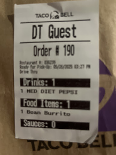 Read moreNever got my food so I can't even review that. What I will review is the service at this Taco Bell.