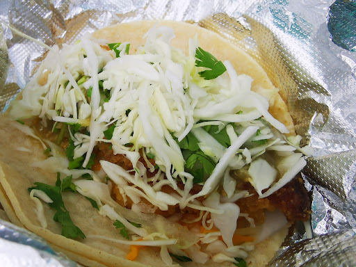 The fish taco used almost cold fried fish. It was heated earlier obviously but it became cold when served. This tasted gross and we gave up the fish taco.