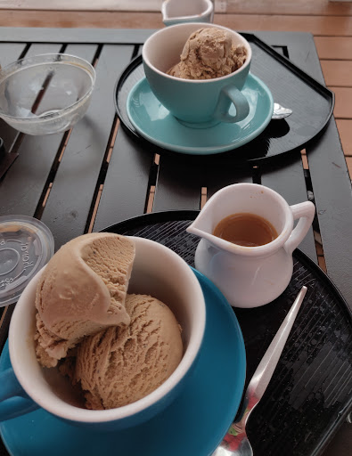 Small coffee shop and farm which is home to the first canned coffee, UCC, a Japanese brand. Estate grown, hand picked coffee. They offered three samples to try which was welcome on a rainy weekday afternoon. We walked onto the small field for free and also saw they offered a paid a tour where people got to learn how to roast coffee beans. They have a small shop with a few baked goods as well as their own brand coffee beverages. Loved the affogato as their coffee ice cream made it so smooth and delicious. Ice cream only available at this location, so worth trying! Cute handmade tote bags sewn from burlap coffee bags for sale too. Nice experience, glad...