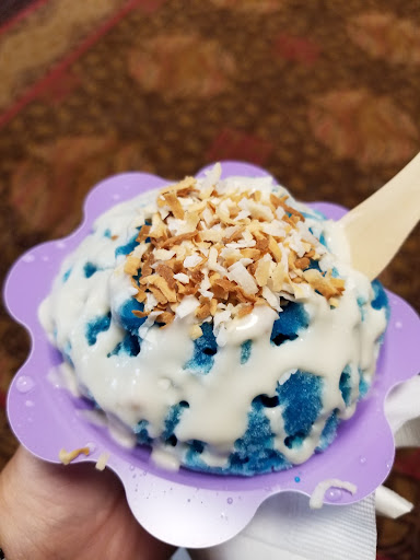 Service was unprofessional and so slow. We got to the register ready to order, waiting for someone behind the counter to at least greet us and say “I’ll be right there” or something, but I got nothing and stood there waiting for a long while. A girl was right by the register tying up the trash and then lining the trash can with a bag all the while she could’ve said something to us to at least acknowledge that we’re there, waiting. I was ready to walk out the door until one of the workers finally told the girl to help us. She took our order, and we had to wait at least 5-7 mins for 2 Keiki ice shaves and there were no other orders before us!! I ordered another one after that because one of my kiddos wanted one and that took another 5 mins! By the time we got it, the ice shrunk/ melted and it pooled in the cup. Making ice shave should be real fast. She was moving painfully slow. I wish I had gone somewhere else and saved $30 on 3 ice shaves ($10 which included toppings). They were out of Vanilla ice cream too, which is what we wanted to put in our ice shave. At least the passion fruit flavor tasted good. But really, save your time and go to the Scandinavian Ice Shave...