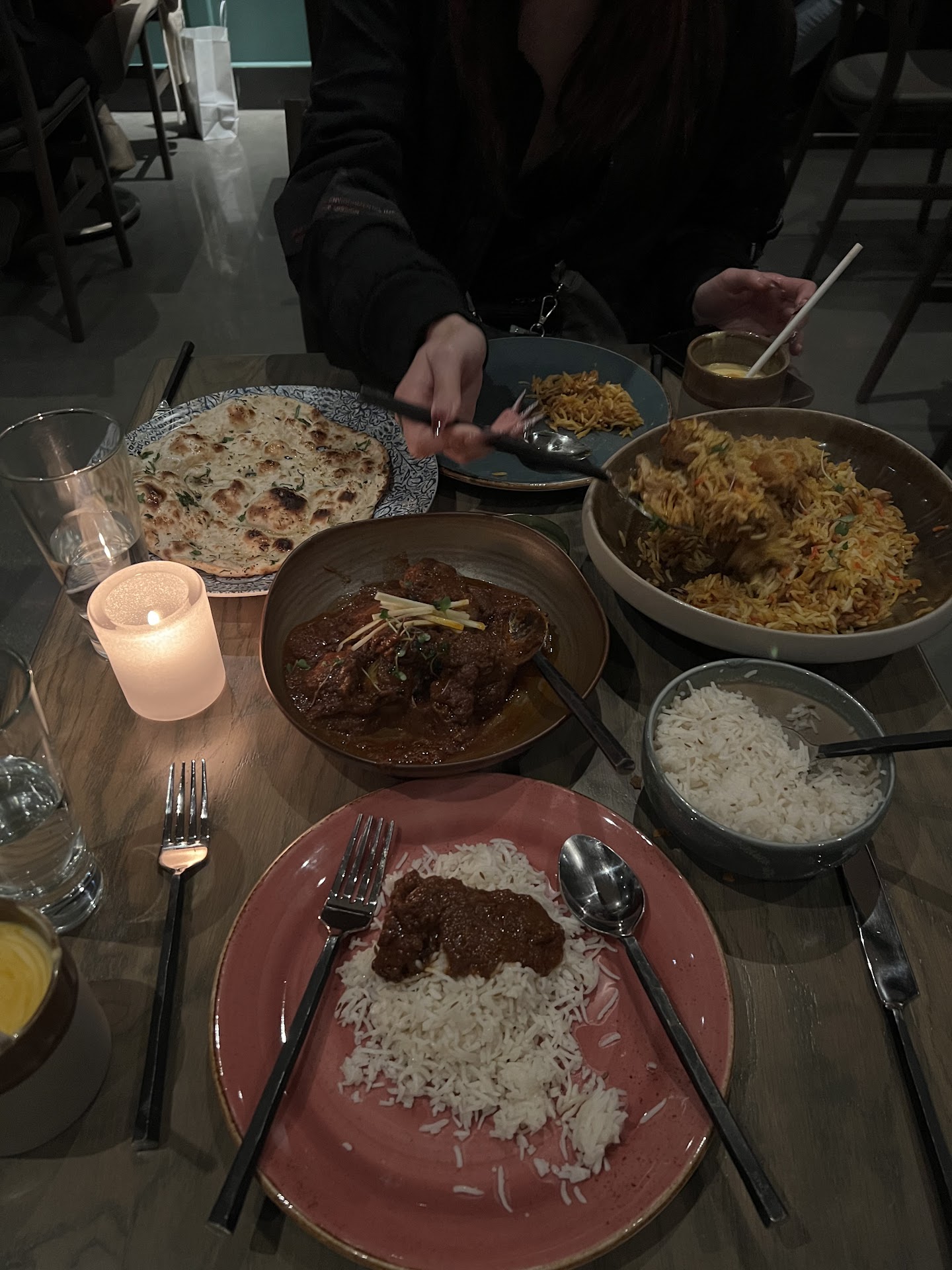 The main course, which I had been looking forward to, was advertised as boneless chicken in a curry sauce with naan. My boyfriend and I both ordered the same dish, yet only one naan was brought out. Worse, the chicken was not boneless—it was full of small, squishy bones, making it impossible to eat. On top of that, it was overly oily. Once again, I could hear other guests complaining about the same issue.