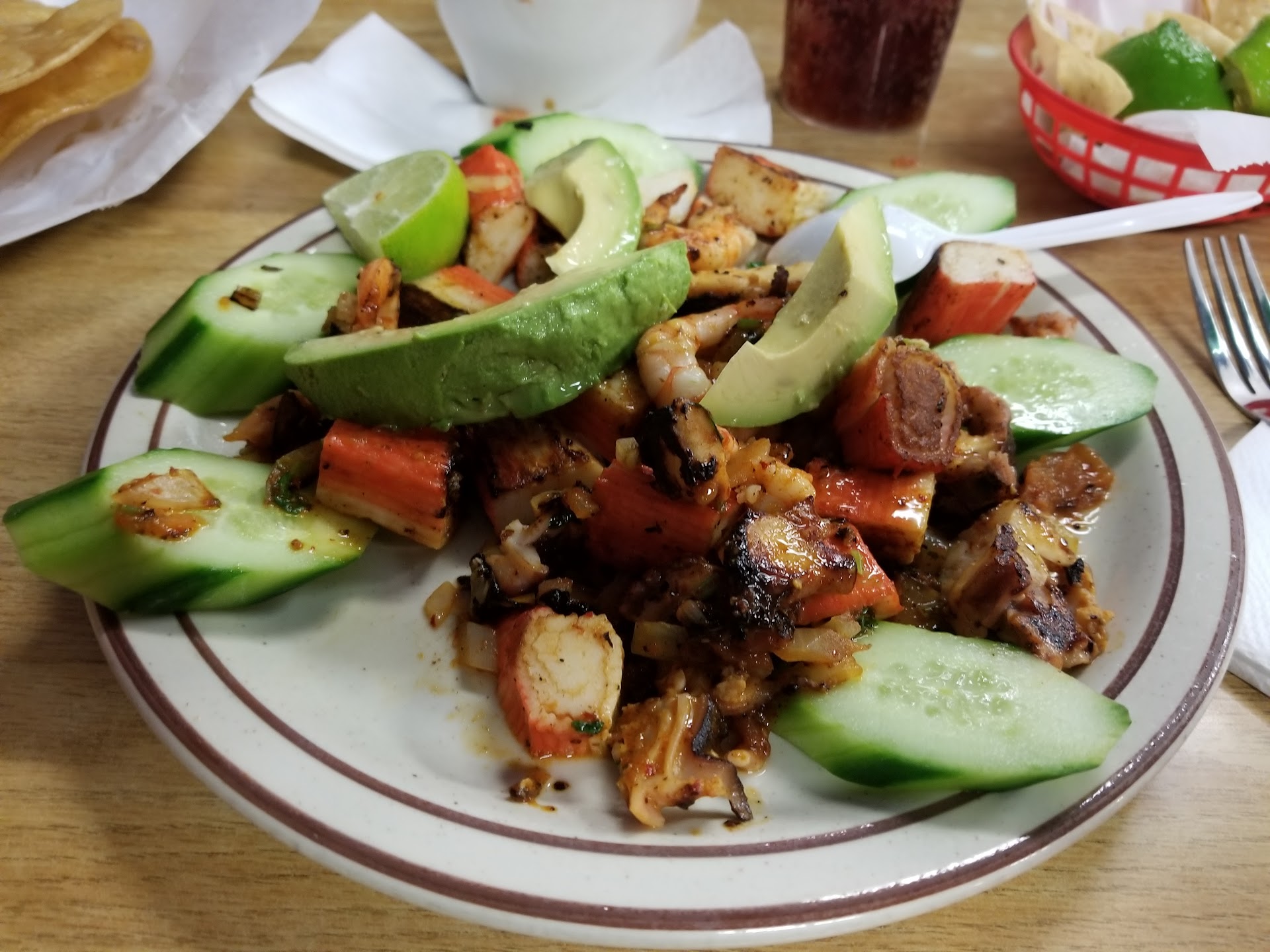 Read more1st time visit and liked it, I'll be back to order more. Ordered large mixed seafood cocktail and a mixed seafood tostada a la diabla... thought the tostada was served cold but was cooked in red hot sauce which still tasted good...the cocktail didn't fare too good as it came out warm, should be cold. Still filled me up, took home...