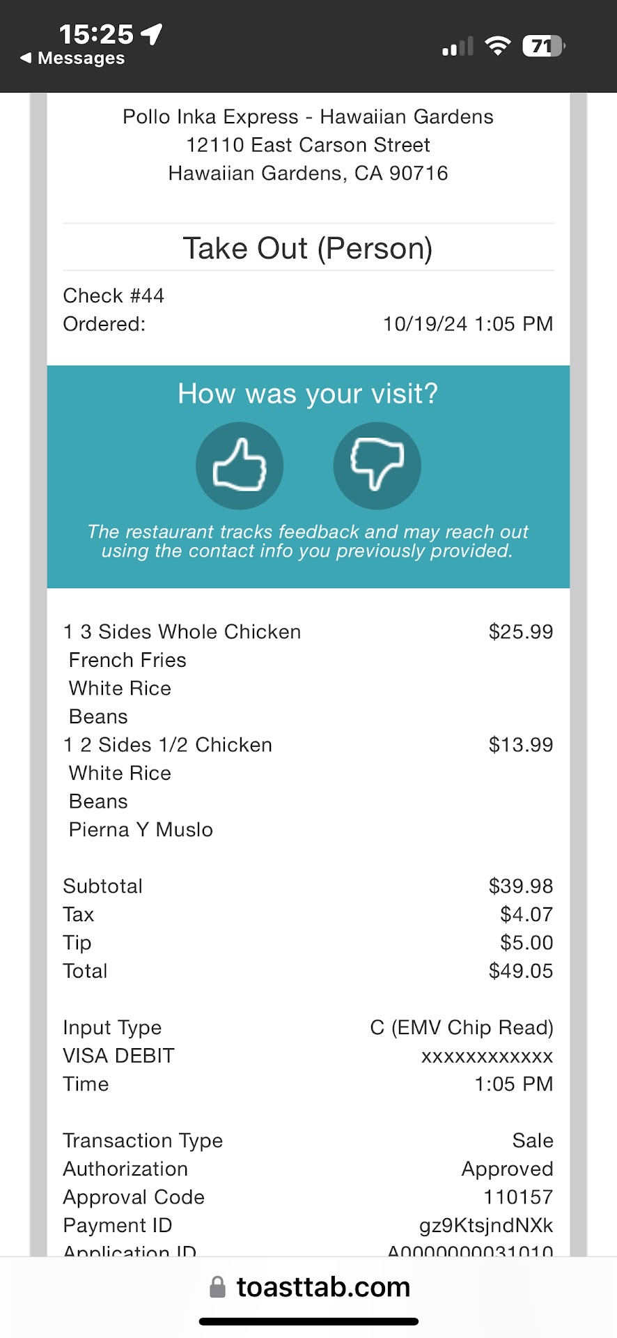 As a loyal customer, I’m very disappointed with this place. They deliver decent and tasty food, but the service is not up to par. Several times when I ate at this location, we’ve had to ask one of the workers to fix the order because we would always order a whole chicken combo and get nothing but dark meat. They would fix it on the spot but I shouldn’t have to tell them to fix this if it was done right. Then today, October 20, 2024, we walked in the store and ordered a whole chicken meal as well as a half chicken meal to go. I asked the cashier if the whole chicken would come with breast meat, and she stated yes. Mind you, we come all the way from Whittier as we are, again, loyal to this establishment because of their good food. We got home and find out that we get four legs on our whole chicken order. I was pretty upset about this because again, I always have to bring it to their attention to fix it, and hoping that walking to place the order would ensure that I would get breast meat, but find out after getting home I didn’t. I called and spoke to the lady that helped us and she says that they ran out of white meat. I said why didn’t you tell us that rather than just give us dark meat and send us on our way. Meanwhile, they did have several chickens roasting and we could’ve waited for that instead they pull that fast one again and just give dark meat and not say anything about running out of white meat. I said well she should’ve told us that and give us an extra piece or two and she says oh we can’t do that. Come on guys, give us options then or tell us it’ll be a little longer because white meat is not available. I gave two because the clean and the food is good.