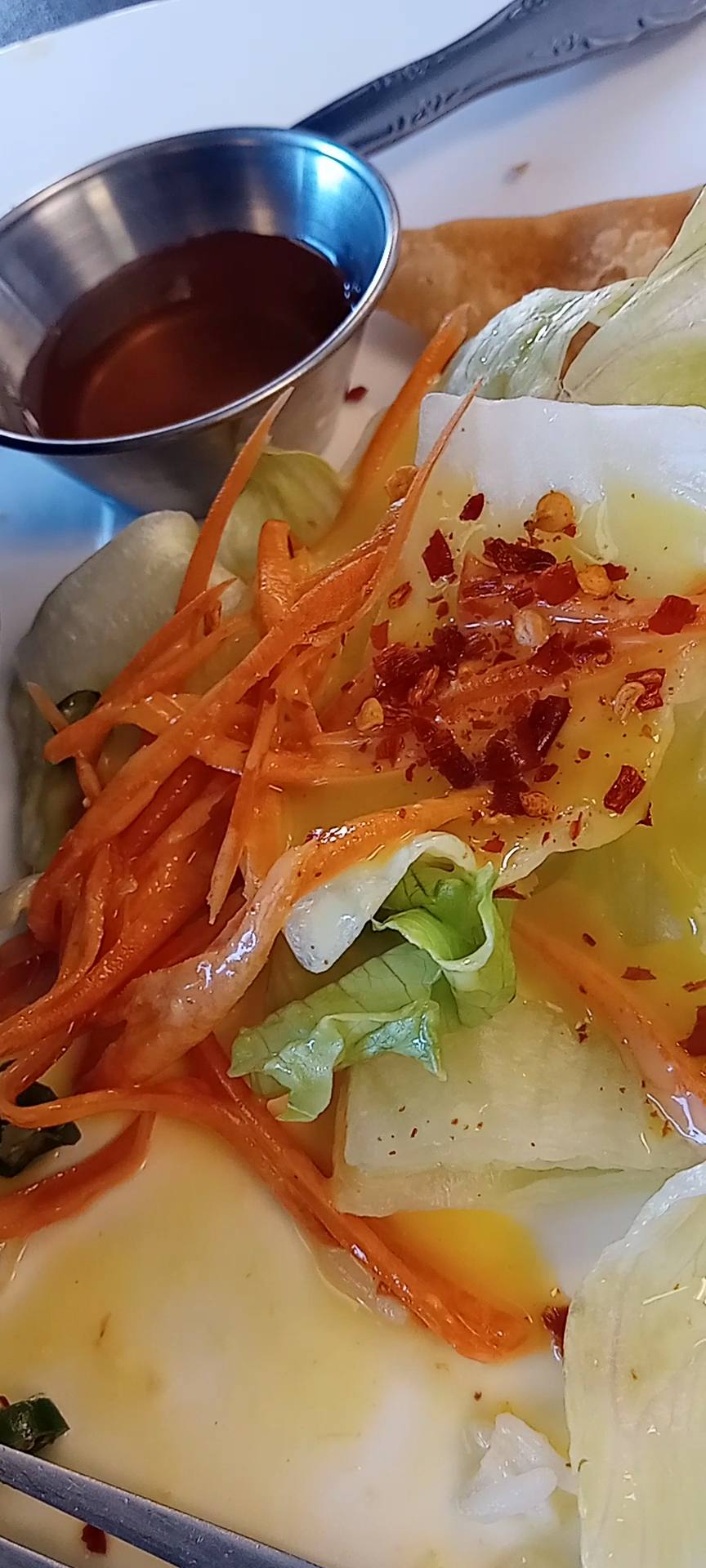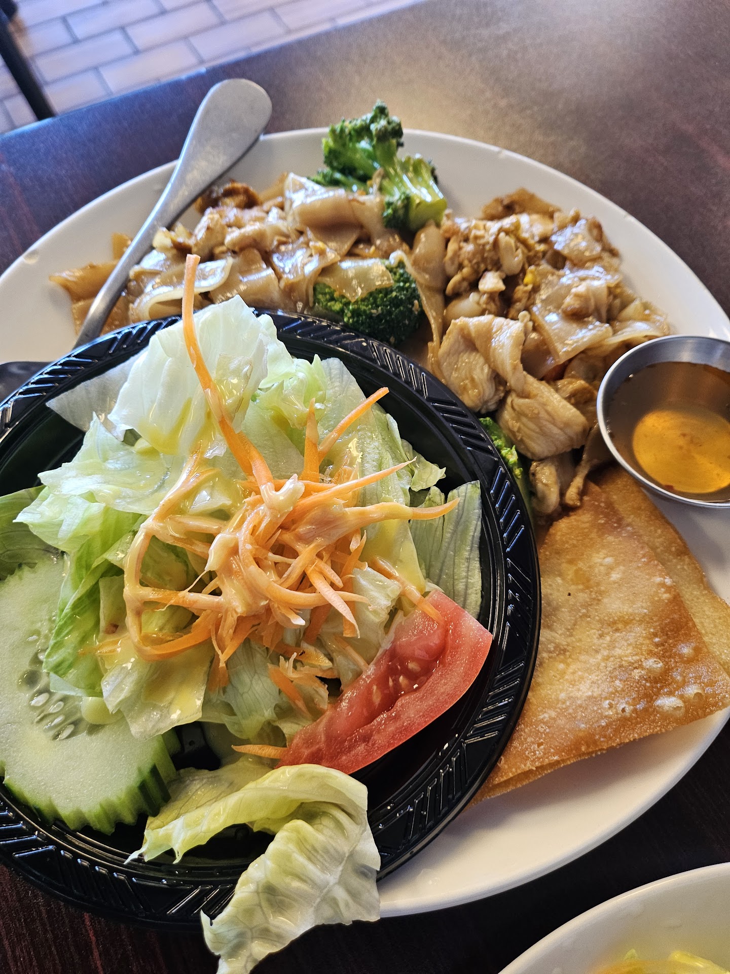 Pad Thai Lunch Special- Wow, look at all that food! The pad Thai lunch special seemed to have the same amount as a regular order, plus 2 fried wontons, sauce & salad. I heartily dug into the delicious noodles, and even had a hard time finishing it w/ one-third left. A lot of food, and a bargain (even without the 15% off).