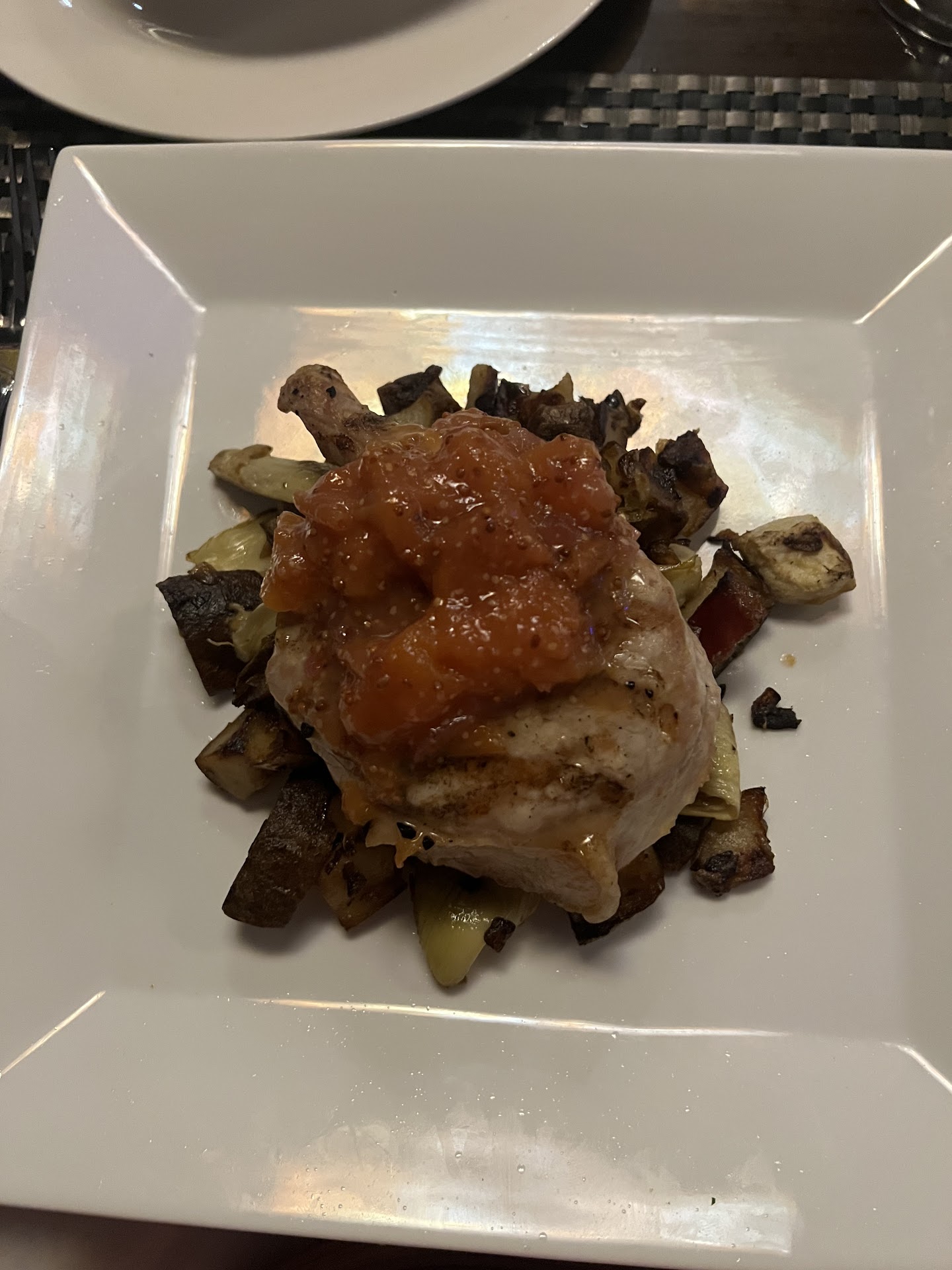 To my surprise, I was served the Grilled Grand Reserve Pork Chop. It was so delicious and juicy, and the sides that accompanied it, which I was initially unsure about (Braised red cabbage, bacon-Brussel sprout-shallot-potato hash, apple chutney), complemented the pork chop perfectly. It was simply incredible.