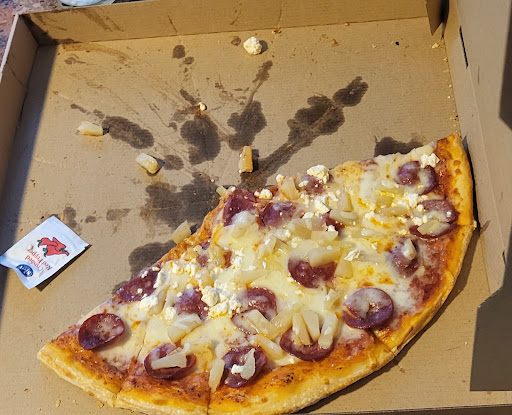 Read moreI order pizza here almost on a weekly basis and have neglected to take a proper photo of one (not that this one is either 😅 maybe next week I'll remember before digging in). Always delicious toppings and sauce made to ultimate satisfaction. I usually default to Pepperoni, Pineapple, and Feta cheese but on multiple occasions have had BBQ Chicken, the Eggplant Mediterranean, and Supreme. Always delicious, and love the thin crust as well. Support your local pizzeria! It is...