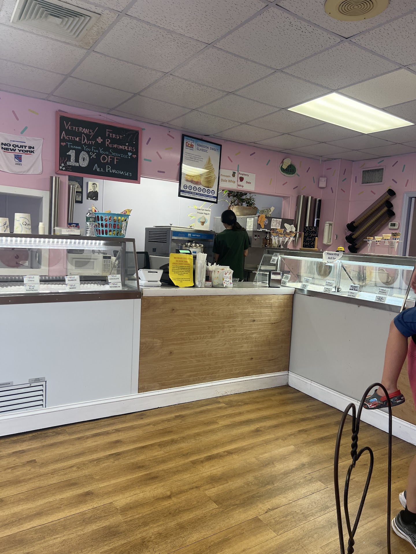 Read moreThe atmosphere was nice and classic. I got a banana split. It was $7.50 which is expensive but so what. The issue I had was that basically the server didn’t know how to make one. Firstly, the banana was not split (cut it lengthwise and put one part in front and the other to the back of the container) but instead was just off to one side of the plastic container. Secondly, and most importantly, the scoops were very very small (three bites at most), they were basically just an incomplete small curl of ice cream with a hollow center. They were not solid scoops. Thirdly, the server didn’t put on whipped cream or cherries.... I guess, in addition to those key elements the container was about 4” too long, which made this undersized banana split seem even smaller. While Guernsey Crest Creamery isn’t as nice looking of a place and has no outside seating, I’d take their banana boat, and eat it in my car or on the stoop of the neighboring entrance, over this place 100%...