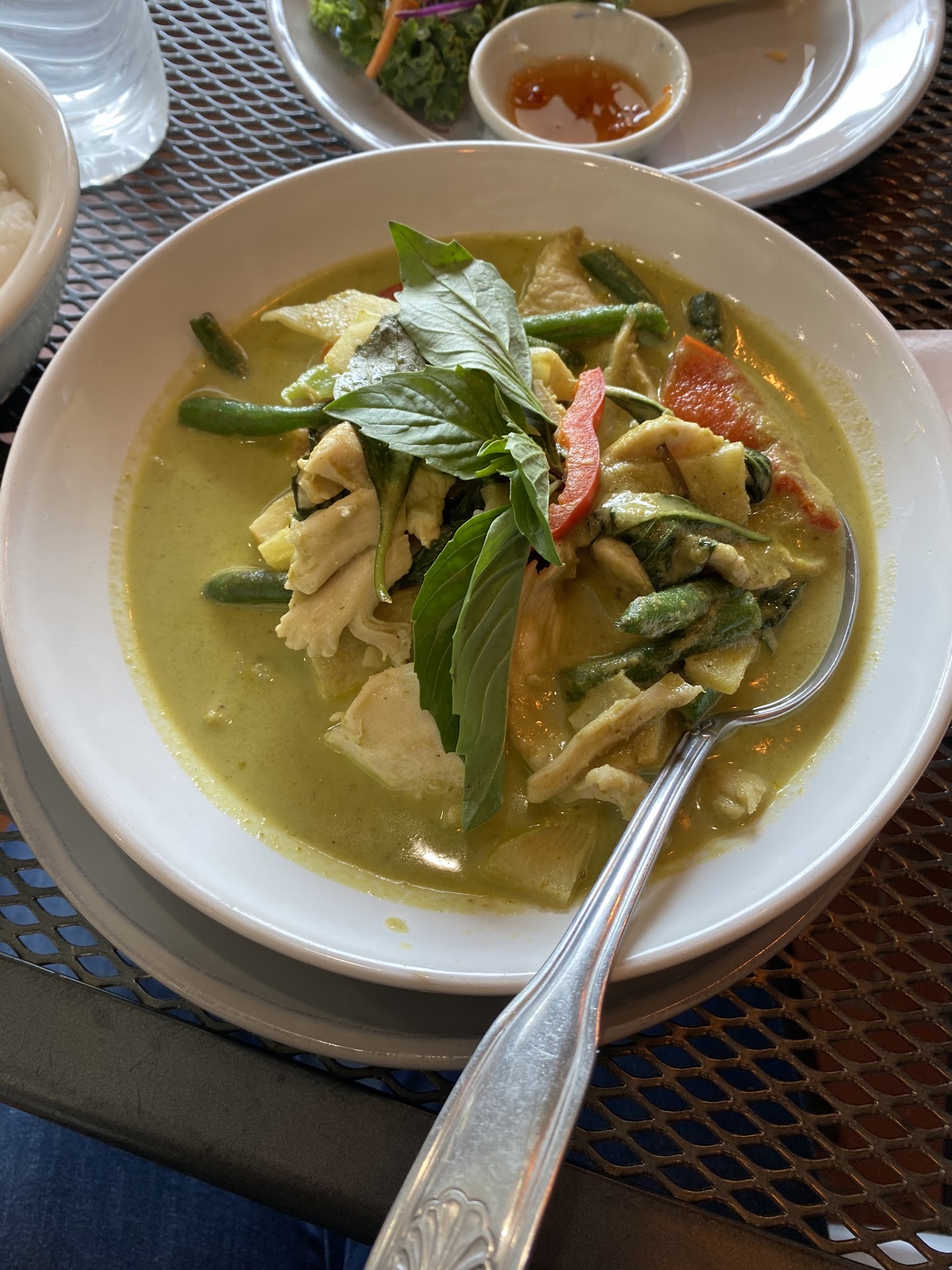 -Massaman Curry (exceptional) -Pad Thai (good, but nothing to write home about) -Drunken Noodles (just ok) -Glazed Salmon Bowl (tasted as you would expect, but the portion size for $20 was extremely disappointing; two very small medallions of salmon with mostly rice and broccoli. Had this been $14, there would be no gripe, but $20 is a rip) -My last gripe is that for spending just under $80 on take-out, I expected a little more white rice. We were given one small container of it, but I understand that it was probably only paired with the curry; just wish it would have been the larger size of rice.