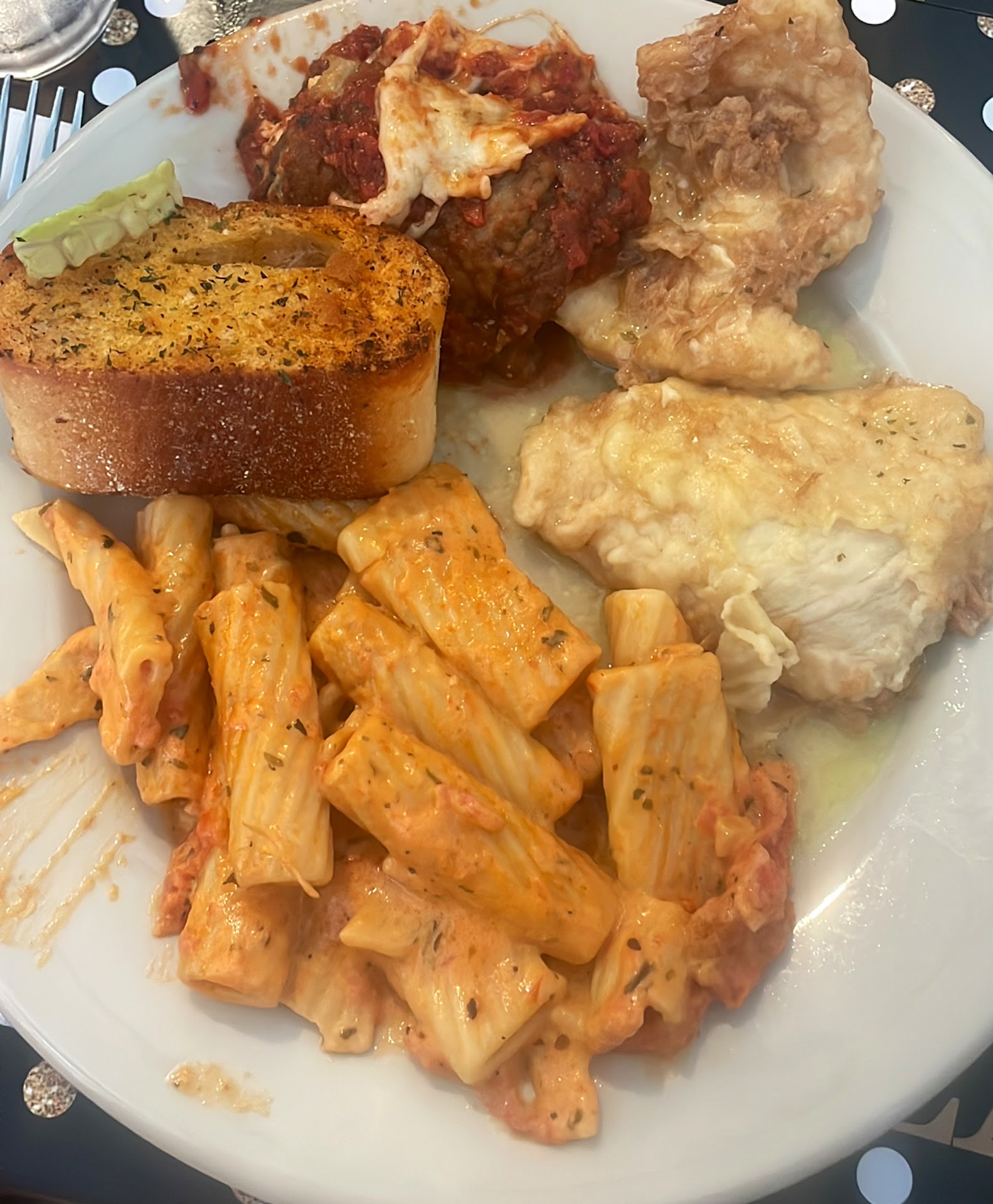 I'm giving 2 stars because everyone that works there are all very nice! As for the food, it gets zero...Everything is OVERLY seasoned!! Tons of seasonings in the house (oil/vinegar) dressing...Also tasted so sweet as if sugar was added...Hot antipasta was overcooked eggplant rollatini and bitter tasting ricotta, stuffed clams stuffed with tons of soggy bread Crumbs (I didn't find a clam), muscles that were fishy with watery sauce as if frozen...The fried zucchini sticks were actually pretty good...I ordered cheese tortellini in vodka sauce with shrimp...In all my life, I have never seen a vodka sauce that looks like a bottle of Italian seasonings dropped in it!! (See picture below) In fact, vodka sauce has fresh basil and no other visible seasonings! I had about 5 tortellini and 1 shrimp and instantly felt sick...it was SOOOO salty and fishy! I was so nauseous when i got home, I actually vomited!! My husband got the eggplant parm dinner...The eggplant was soggy, floating in sauce and loaded with over seasoned old tasting sauce...They were very nice to take the vodka sauce dinner off our tab and charged us for the house salad that comes with it...my husband didn't finish his dinner and took the rest home only to throw it away when we got home.