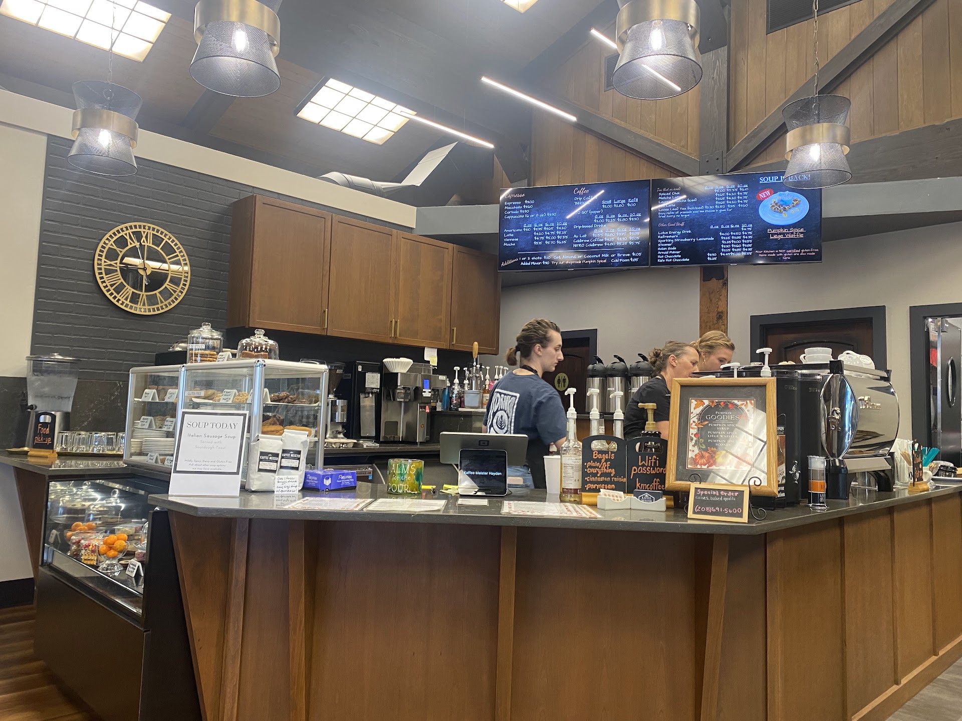 Read moreFirst glance itâs an appealing atmosphere and the shop was loaded with people. The employee who took our order was sweet but seemed inexperienced. The orders were being written down on sticky notes and that in itself came across as a disaster. There were four employees working on a large to-go order while the ones who ordered in house waited at least 15 minutes for our coffee order. The women in front of us received their food before their coffee and we received our coffees before them. Itâs great to fulfill to-go orders but maybe a system of divide and concur would be advantageous. Having Such a large espresso machine and the capability of pulling more then one shot at a time would be helpful. Personally I feel having quality systems in place would allow for the employees to be able to offer a more quality experience. Side note.. the coffee cake tasted like it...