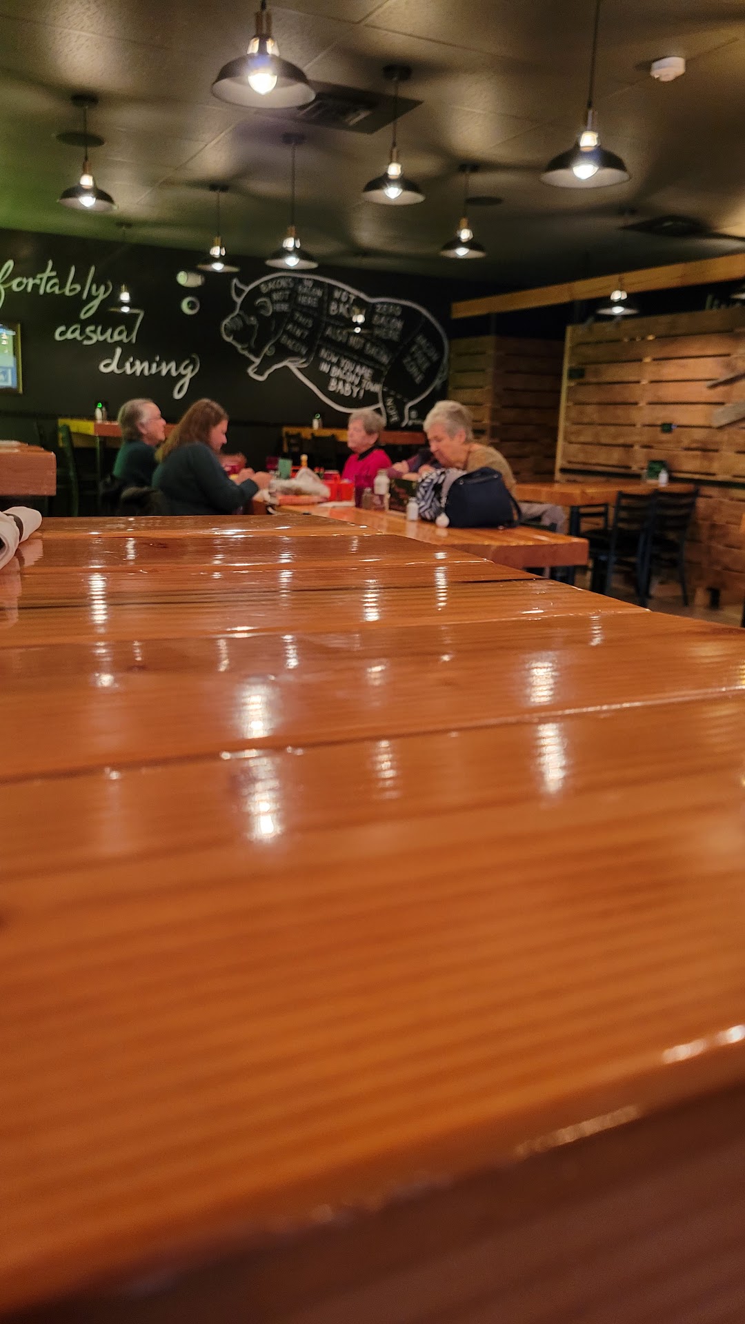 Off to a good start. I'm temperingy review with my understanding that this is a newer eatery with new staff and say it's a solid 3. My perception was overall quality was average. aerving sizes were a little on the small side especially when compared to like restaurants in the area. Quality was also flat at about a 3 of 5 overall. I had the country scramble and my best attempt to describe is it's as though someone scraped the topings off a combination pizza and then scrambled in some eggs. There were a LOT of black olives which really took over the flavor of the dish. We also ordered the BLT with tots. This was an unfortunately disappointing dish. Where is the bacon? One strip split in thirds left us wanting for the star of a BLT... The lettuce was also odd in that the bitter ribs were used and there were 5 of them on the sandwich which had to be taken off. We went on a weekend for lunch and about 1/4 of the tables were empty. There seemed to be a lot of confusion over which server was serving which table and individually what each server had done at each table. Visits from the server were few and far between with drink refills (you're allowed 2) were mom existent.