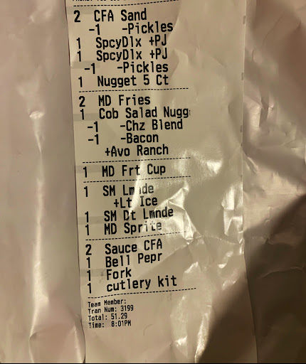 Read moreUpdate 02/05/25 Went through the drive thru and got a chicken biscuit and a sausage egg and cheese biscuit. It was quick and efficient. The service was good the food was good. It was a win today. UPDATE 12/19/24: We frequent this specific restaurant due to it's convenience en route to work. We've never been especially impressed with this CFA. What happened to "my pleasure"? We haven't heard this in several visits. Our typical meal of ten chicken minis was haphazardly assembled. Perhaps they were being tossed into the box from across the kitchen (see photo). The usual snappy drive-thrus are a thing of the past, it seems. We continue to be disappointed in this restaurant but always hope that the next time will be better. While the food is always good (less the soggy hashbrowns and inconsistent application of honey butter on top of the bread), I think we might be done with this establishment. I went to the Haymarket Chikfila this morning and ordered a ten piece chicken mini meal with hash browns and a large soda. They asked me to pull over to the next parking lot, and they would bring my food. 6 cars went through the line before they brought my food. I share it with my wife on the way. This was the first time I had been parked at Chikfila. The concern is it should be quick,...