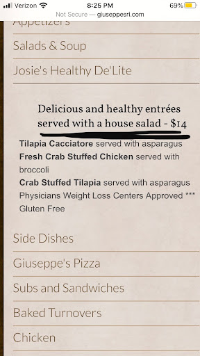 Read moreI reviewed Guiseppe’s a couple of weeks ago with 3 bad experiences, the last being a couple of weekends ago when the entire experience was extremely disappointing. Maybe shortening it and changing the expletives will help get it to show… I called, spoke to David, and ordered a large pizza and calamari for delivery, at 2:26 PM. He said they don't have a delivery driver on Sunday, until 5 PM. I then tried to pay over the phone as I always do, I was told that he was, "in the back and it'd be easier for me to pay when I pick up." My boyfriend stood, waiting for 5 minutes (he’s waited 10 previously) for the food to come up, this time, while an inappropriate conversation about "getting ‘effed’(the other word) up", was going on between an older male employee and the hostess, while another employee went to look for our food. The hostess then went to look for the food as the other person didn't come back and she "knew it was ready", she returned with the food. When we opened it at home, we were immediately disappointed with the calamari as it was about a handful. Not worth the $10 it says on the website and on the menu, I have in my apartment. Further, they charged me $14 for this handful of cold, soggy calamari (picture posted of receipt and menu). I called and asked to speak with the manager. The male (sounded younger than the original man I ordered with), said, sure, and put me on HOLD. I wanted to share our negative experiences, so they could fix the issues. I was left on HOLD over 3 minutes and hung up. The pizza is good but I wouldn’t recommend anything else and the service...