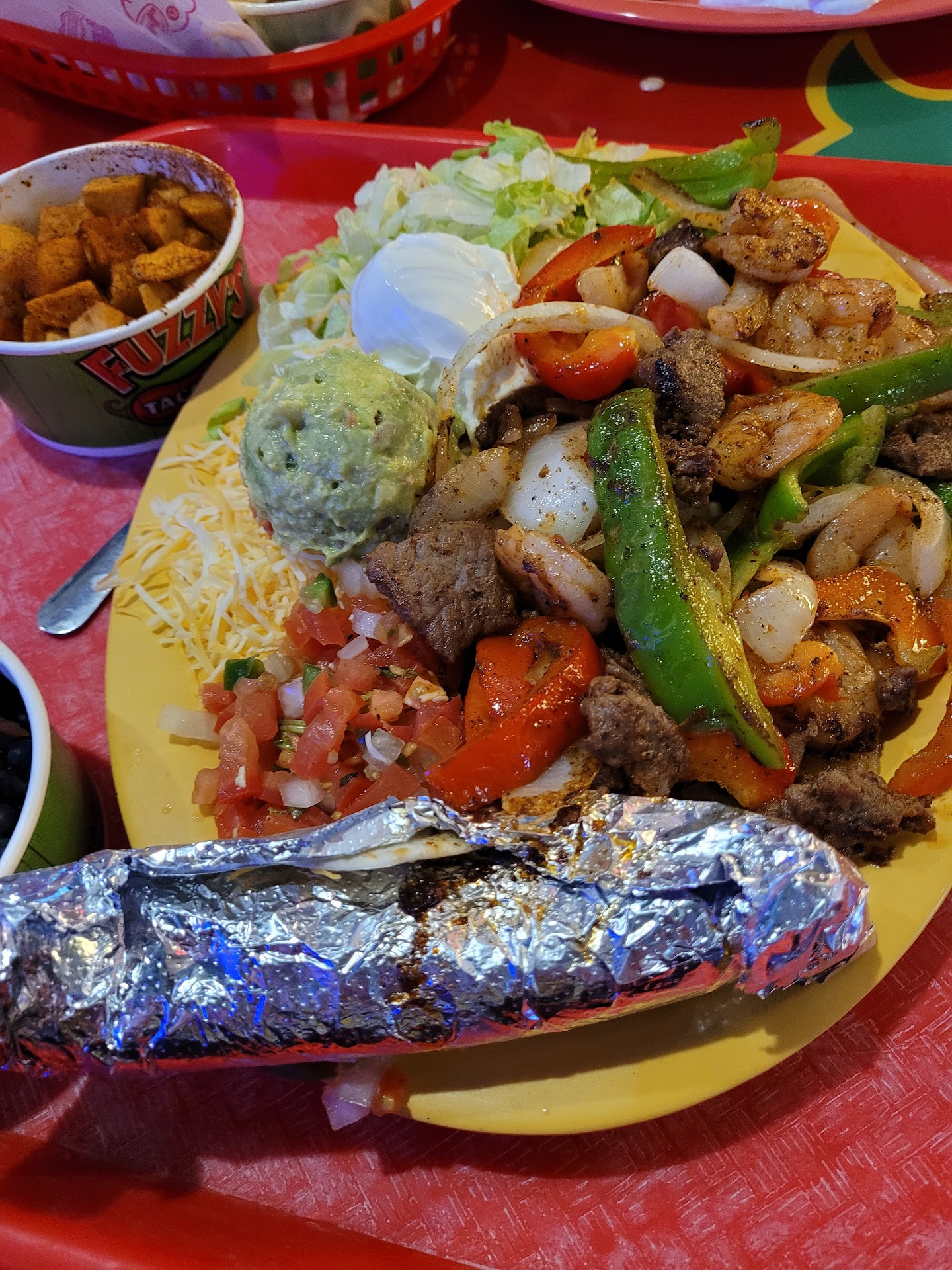 Read moreCrappy NOT tempra shrimp tacos the cashier said they can't do cruncy tempra shrimp taco cause the tempra shrimp didn't fit but I got someone in the back to make me a couple which turned out to be 3 tiny little regular salad shrimps per taco a crap load of lettus. The steak burrito was supposed to have refried beans but they put hard black beans inside instead. My friend who I recommend this place too ordered fish tacos with cod she got what got instead 2 crappy NOT tempra shrimp tacos with tiny 3 pieces of little salad shrimp too and all lettus. We ordered sides of refried beans that turned out to be very old, hard, crusty and not even fresh. We ate as much as we could but all got sick to our stomachs from the old refried beans. We dumped salsa in them hoping to make the beans not so hard and nasty tasting but they were just plain old like days old and days cold. The meal Costed my friend over $50 for all garbage. We could have went to taco bell and paid half the price and would have been happier with that instead. Your workers are too young and lazy the environment use to be happy a cheerful but your workers were not very helpful or happy. They expect a tip for what? Being a cashier taking your order and telling me what I can and cannot have.and then we have to.go pick.our own food up. They don't deserve tips for doing nothing but what they get paid for as their position. They are not serving us. Then we decided screw this let's get a couple strawberry mango swirl margaritas cause usually I get them and they always had alit of alcohol in them you could taste and catch a buzz from but not yesterday we got charged another $18 for the drinks that tasted like slurpees instead no alcohol taste we didn't even catch a buzz just got so angry we didn't get what we expected. I will no longer recommend Fuzzy Tacos anymore to anyone. Will not ever be coming back to fuzzy tacos as we got sick and mad at the cost for nothing we actually ordered. Stop hiring young lazy kids who are rude. Bring back workers who made this place enjoyable cause this restaurant is gonna go down as another crappy restaurant in...