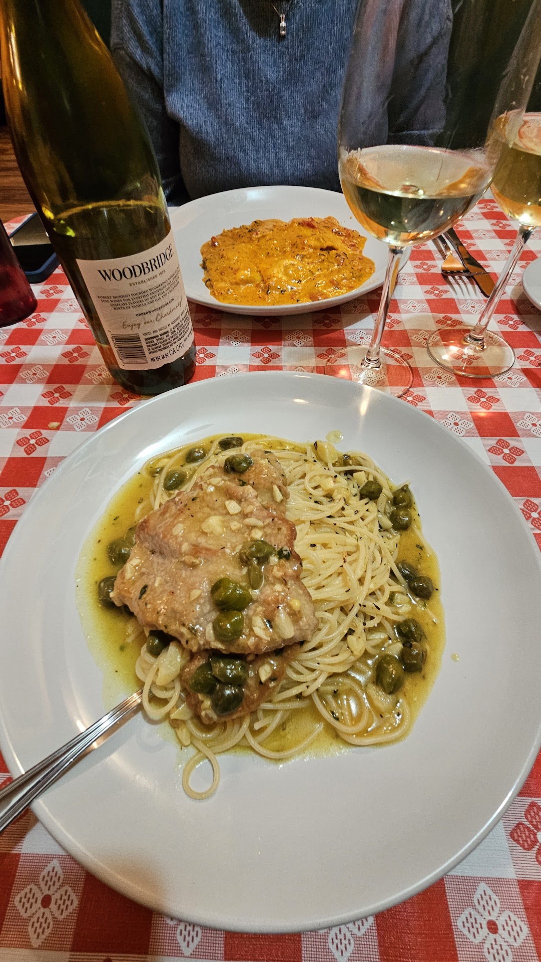 Read moreThis Italian Restaurant is not to be missed! We were greeted by Leo who was very friendly and professional and warm to talk to. We waited for our to go order and received service while we waited, if we wanted a drink or needed anything. We ordered the Chicken Cacciatore and Eggplant Parmesan, also the garlic cheese bread and was delighted to taste how good everything was. The portions were ample and the pasta was very savory. The chicken cacciatore has two big portions of chicken and large pieces of peppers and mushrooms with a lot of sauce. The Eggplant Parmesan also has a savory sauce and plenty. We received our drinks while we waited and was offered to go cups when we left with a fresh refill. The ambience is cozy and we look forward to...
