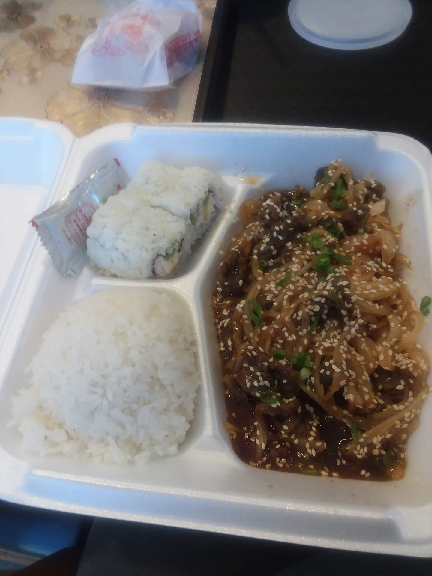 Read moreI had the Teriyaki Beef combo which actually tasted pretty good - both the beef and the California roll were good. My husband had the Tuna Spicy Roll combo and it wasn't good. The roll came with something called sesame noodles which were cold noodles that tasted like they had Thousand Island dressing on them. We also ordered egg rolls and we weren't impressed with those or the crab rangoon either. The food is served in plastic and styrofoam containers and you get plastic utensils. They also do not have Coke products so I asked for tea but they didn't have any artificial sweetener. If you do order a soda it will be in a can. They also have a place on their credit card receipt for a tip which I gave. Then we had to pick up our own food and clean off our own table. Do you tip at McDonald's or Wendy's? I don't think so. Staff was not very friendly. Very unimpressed. Will...