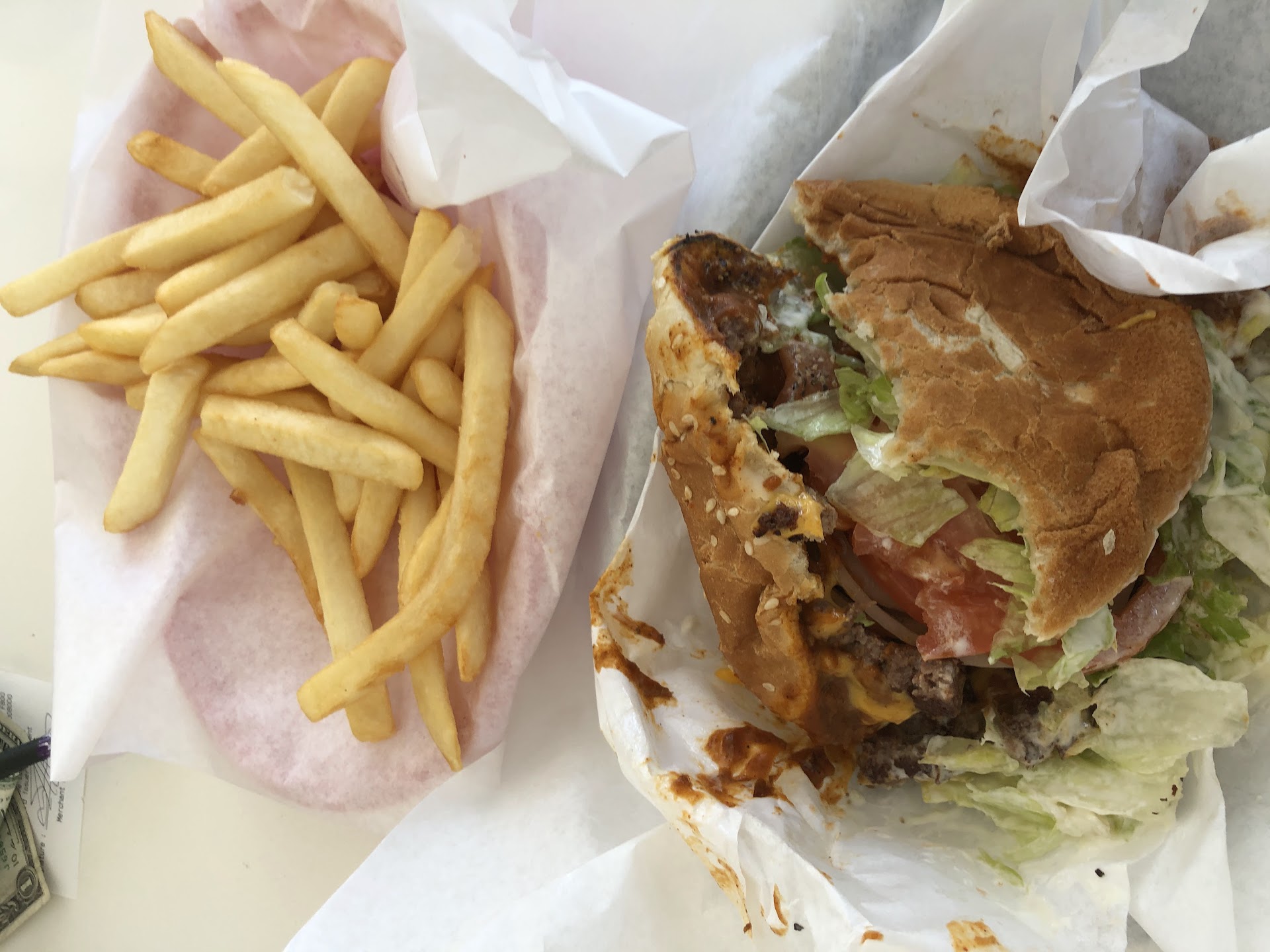 Read moreHoly cow! Don't take the name lightly. These burgers are GIANT! Best bang for your buck if you're looking for a killer diner style burger. I have been meaning to try this spot for a minute now, and I was not disappointed. I mistakenly ordered a bacon double cheeseburger, not realizing that their average patty is a 1/4 pound patty. This burger was huge, and I'm sure the pictures don't do it justice! I love when burger places overfill your fries to the point they are all over the bag 🍻 The cashier was very nice and efficient at taking my order. This is a grab and go kinda place. There are two small windows where you can order and pick up your food. Food came out fairly quickly. There was only one other person there at the time, and they had just received their food. The bacon was a nice thick cut and cooked perfectly. The cheese was so gooey and melted to perfection. It kept me coming back bite after bite. Good quality patties that were well seasoned, and the perfect meat to veggie ratio 👌 😋 As far as price goes this beast of a burger and a big bag of fries came out to $18. Around here, that's a good price, and next time, I'll go with a...