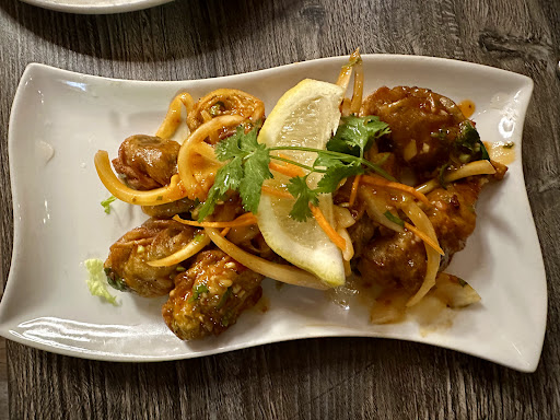 -Chicken momo mild heat. This was delicious!!! The smell immediately hits you when she brought it out! Our first time trying Nepalese food n so glad I read reviews prior to the visit bc I ordered the momos bc highly recommended! When our naan came out, we dipped it the remaining chili sauce from the mom's.👌