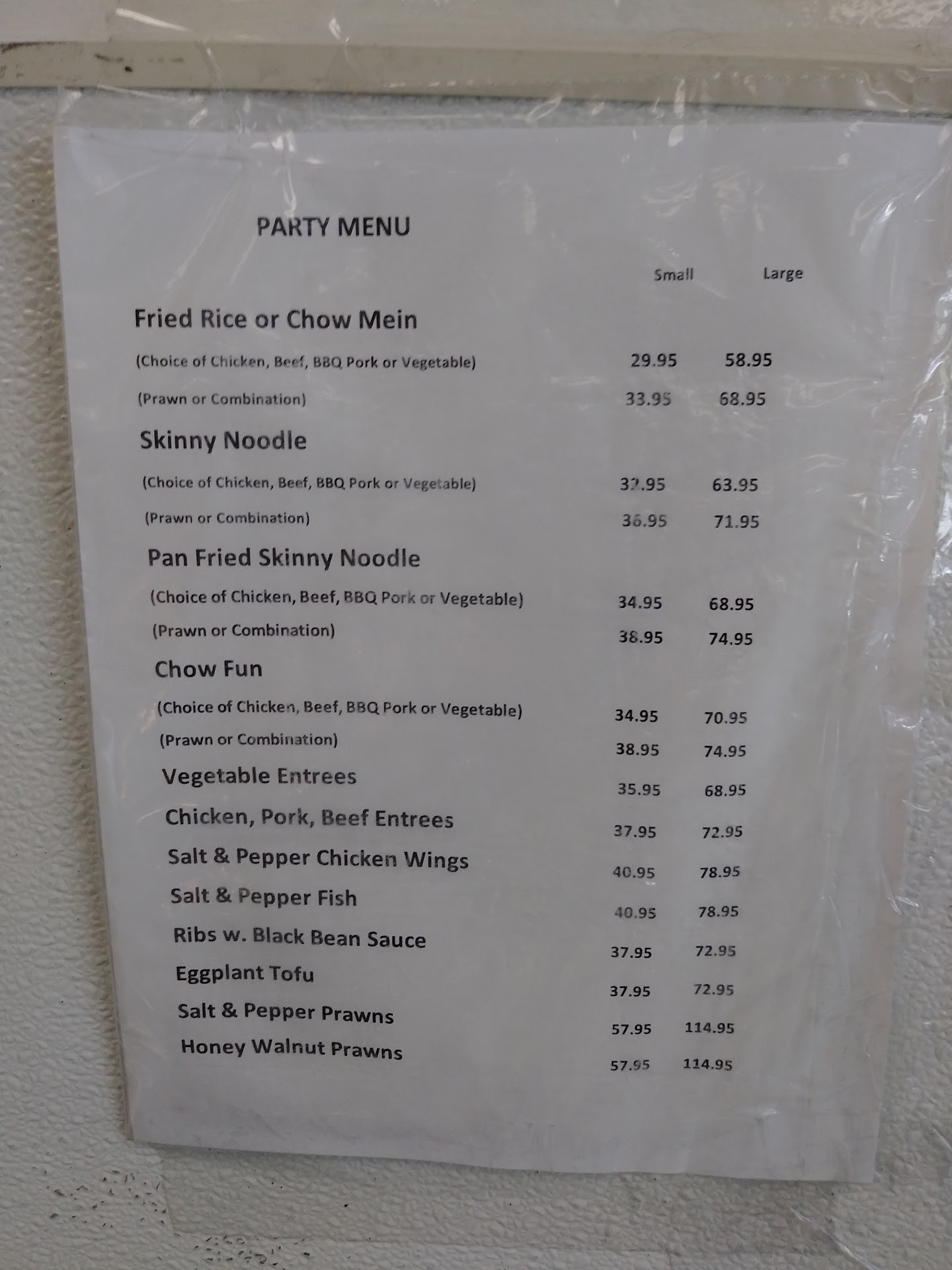 Update: portions seem to be smaller than before. Also a few doughy pieces of fish and spicy chicken...but prices are still reasonable. Great Chinese to go dishes. Party trays also available. Very nice people. They don't cheat on quantity as well as quality. Very...