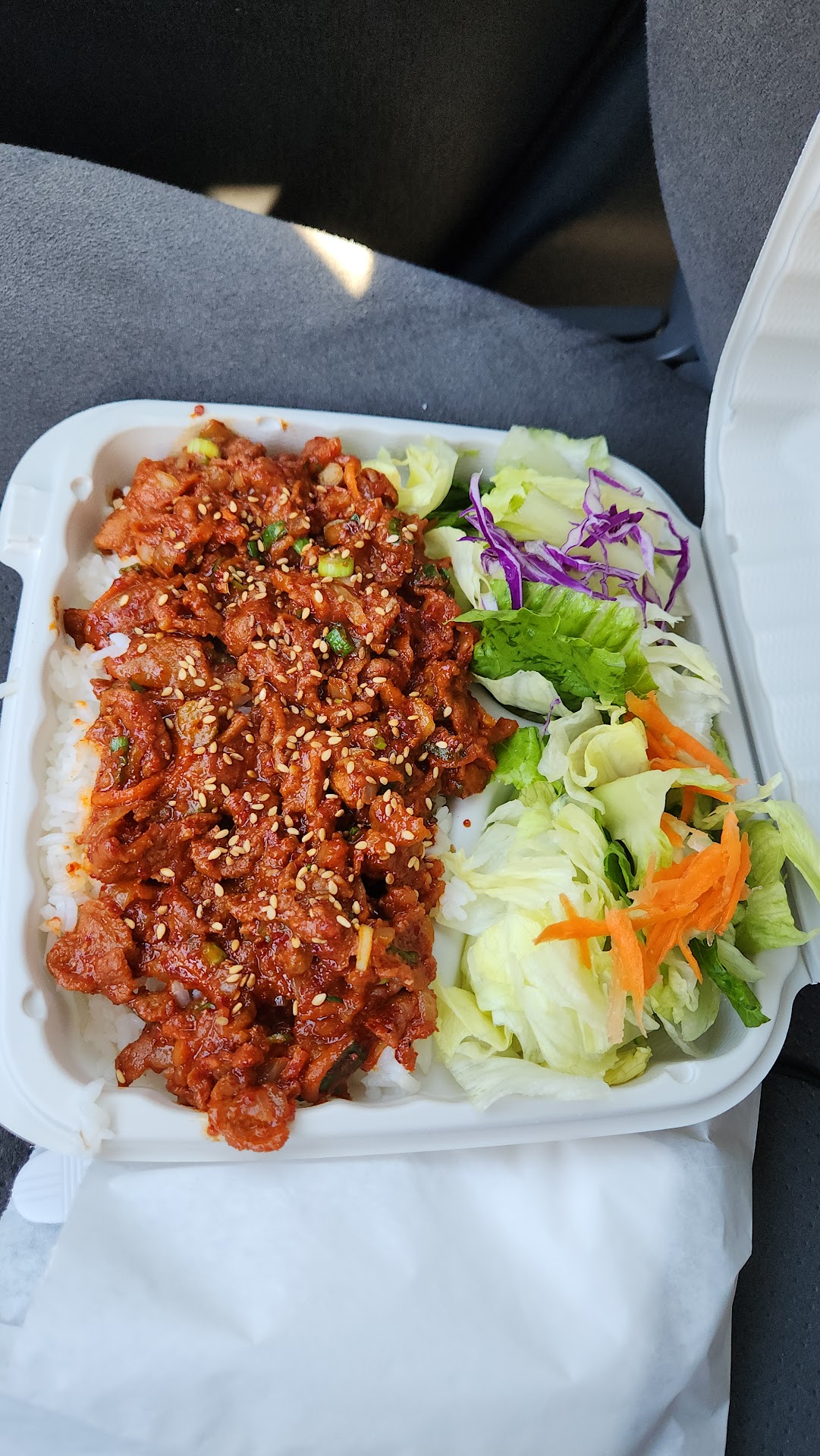 Read moreI was about to give this place a decent rating until I found a hair in my salad. And that was after the man on the phone was fairly rude to me. Their phone quality is so terrible so I could barely hear him and he got mad about that. The first time, I tried the spicy pork plate and it was not bad. It was very spicy whereas other restaurants are not usually. I saw a photo of the chicken teriyaki from another review and decided to try that too. When I got it, it looked totally different. They skimped on the chicken too for the price ($15.5 total as of Nov 2024) which doesn't make sense because chicken is the cheapest meat. That was also when I found the long hair under my salad. I ate it anyways because...
