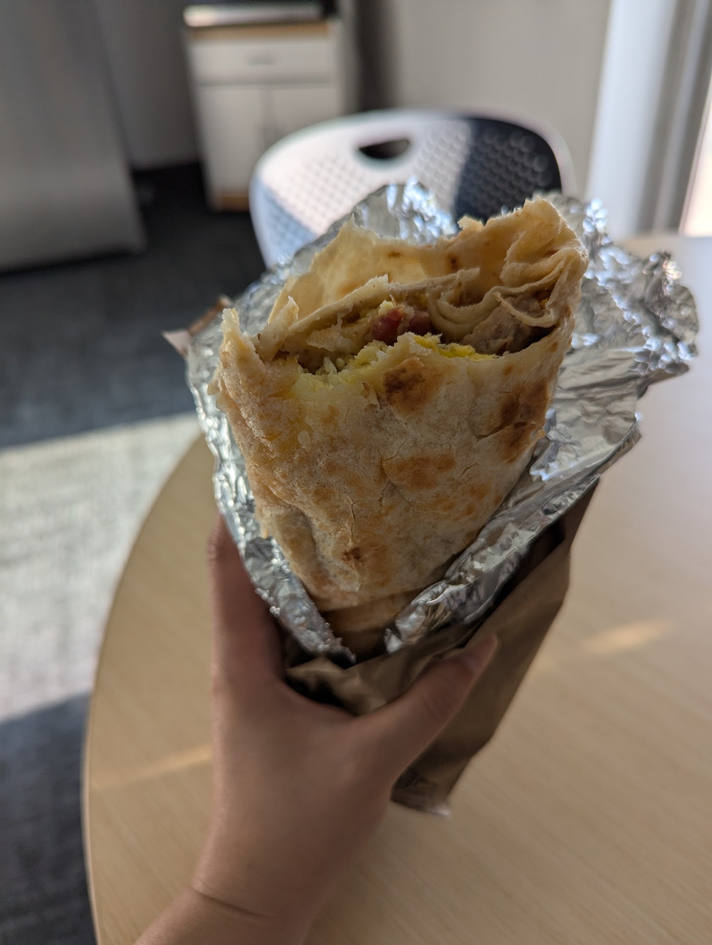 Update: burrito does not taste good with only eggs and potatoes (no meat nor...