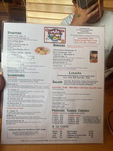 Read moreCoop's Pizza in Hayward, WI has been a cherished annual stop during a cabin trip I make with college friends. Over the years, we've witnessed countless changes—the removal of the fish tank, updates to the entrance, the opening up of the bar space, and, most devastatingly, the elimination of shredded lettuce from the salad bar. While I can accept change as a part of life, it comes with an expectation of integrity and flexibility.