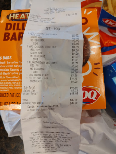 Read moreI go to this DQ in Hayward at least once a week (usually the drive-thru) because there's limited fast food in the area and I prefer DQ. Lately I haven't been all that impressed though. About a week ago I ordered a small blizzard and it wasn't even filled all the way to the top. I would've complained but I figured maybe someone was new or they were just having an off day. Then this evening I ordered four single BBQ chicken strips... I've always been a fan of chicken strips from DQ but I've noticed this past year that their strips are getting smaller and smaller. When I got home tonight the strips were practically the size of small chicken nuggets. They were short in length and I just think it's ridiculous to market them as "strips" if you're going to have them marked a $1 a piece. I might as well go get 4 nuggets for $1 from McDonalds. Anyways, I'm not usually into complaining but I think the DQ franchise should consider making the strips bigger like the size...