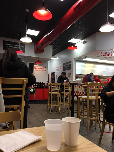 Ā Ā Ā Read moreI have tried several locations and made the conclusion that their hamburgers are not that great. I always get fries and that's the only thing I call great. Let's talk about the burger: the meat is dry and the bacon has a rancid taste. The condiments and toppings are good and you get all of them included with your burger. Today there was a burnt taste in my burger. Don't know if it was from the patty or the bacon. My biggest complaint of the chain is the bread. The chefs do not warm the buns. You get them cold, wrinkled and flat. It doesn't make the experience good and I hate my burgers cold. A couple of months ago I tried their hot dog in the Foster City location. Again their bun was cold and I hated it. Therefore you should avoid the hot dog at all costs. If I had known it would be like that then I would have gone to Costco to get a good hot dog for just $1.50 and a soft drink is included. Anyway, that's the food experience. Oh, I forgot to praise Five Guys for giving us free peanuts. I loved them. A typical Five Guys environment is noisy. They blast the music in most locations. If you don't mind that then that is your kinda place. The restaurant can be messy and unkept. A big reason is peanut shells are all over the place. Guys if you are looking for a men's restroom in this location, there is none. There's a ladies and a mixed gender bathroom. That means guys are out if luck if both bathrooms are occupied by ladies. I guess I am going back to In N...