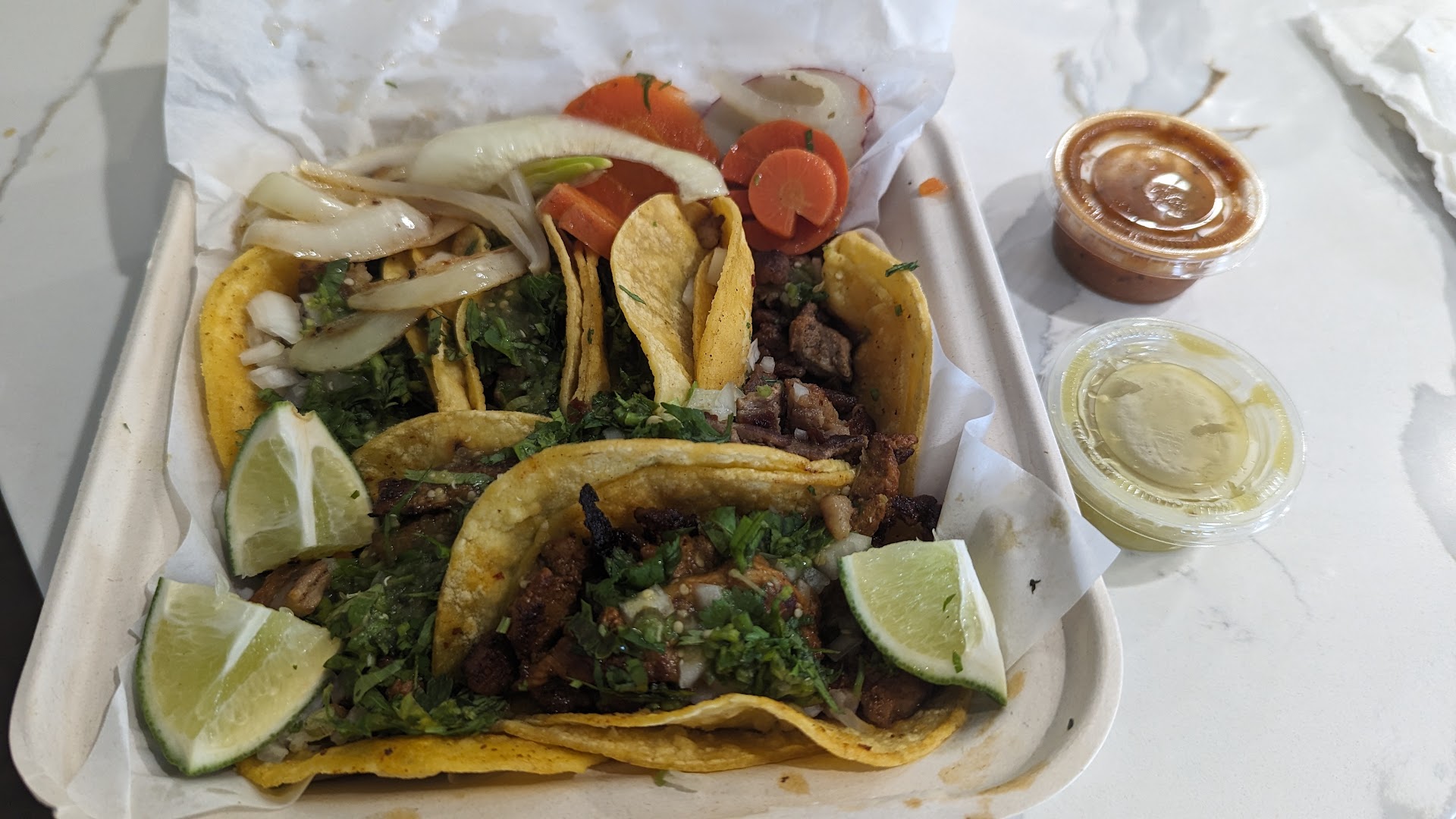 First time customer on Taco Tuesday. Ordered 2 carne asada and 2 el pastor tacos. Wow, so delicious! My take-out order was packaged up very nicely. The tacos were served with a side of Delicious grilled onions, lime wedges and their house salsas, red & green. If you love delicious street tacos, look no further, this place makes Delicious tacos with grilled onions at an amazing price of $1.50 per taco. Their full menu looked great too. Check out Taco Tuesday, you will be happy you did and will love it! Also, family...