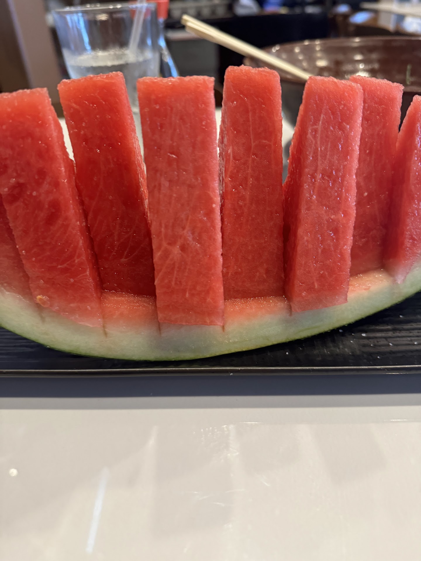 While I waited for my friend in the bathroom, they brought out watermelon. I thought that was such a kind gesture.