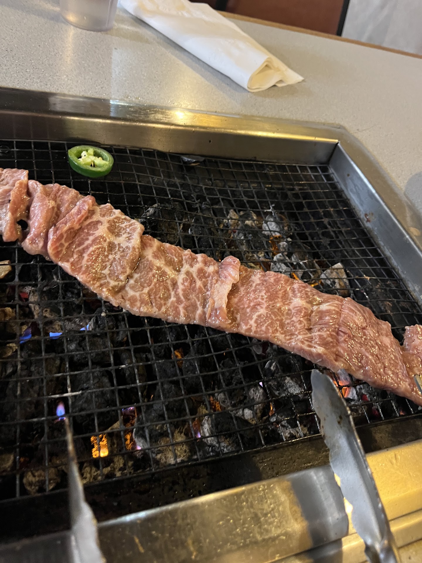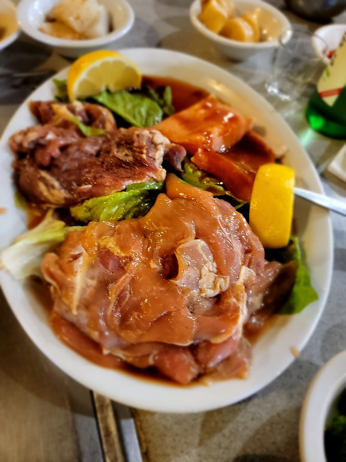 Read moreWe came here for dinner. We were seated right away and the server handed us menu. She served us hot tea as we were getting ready for menu. As we ordered, she gave us our sides for bbq. We had chicken and bulaogi. It was pretty ok. It’s a charcoal grill. But it took them a while to get our sides refill.
