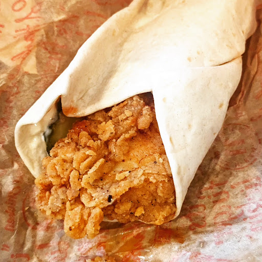Each wrap gives you about three bites' worth, which is all I wanted. You pick from five flavor offerings, and I chose the spicy mac and cheese and the barbecue. I honestly liked the textural combination of the spicy mac with the chicken tender bites. But I wouldn't go back for it. The barbecue was much less desirable, with merely the chicken, a couple of pickles, and some barbecue sauce and mayo in there somewhere. The tortillas were lackluster.