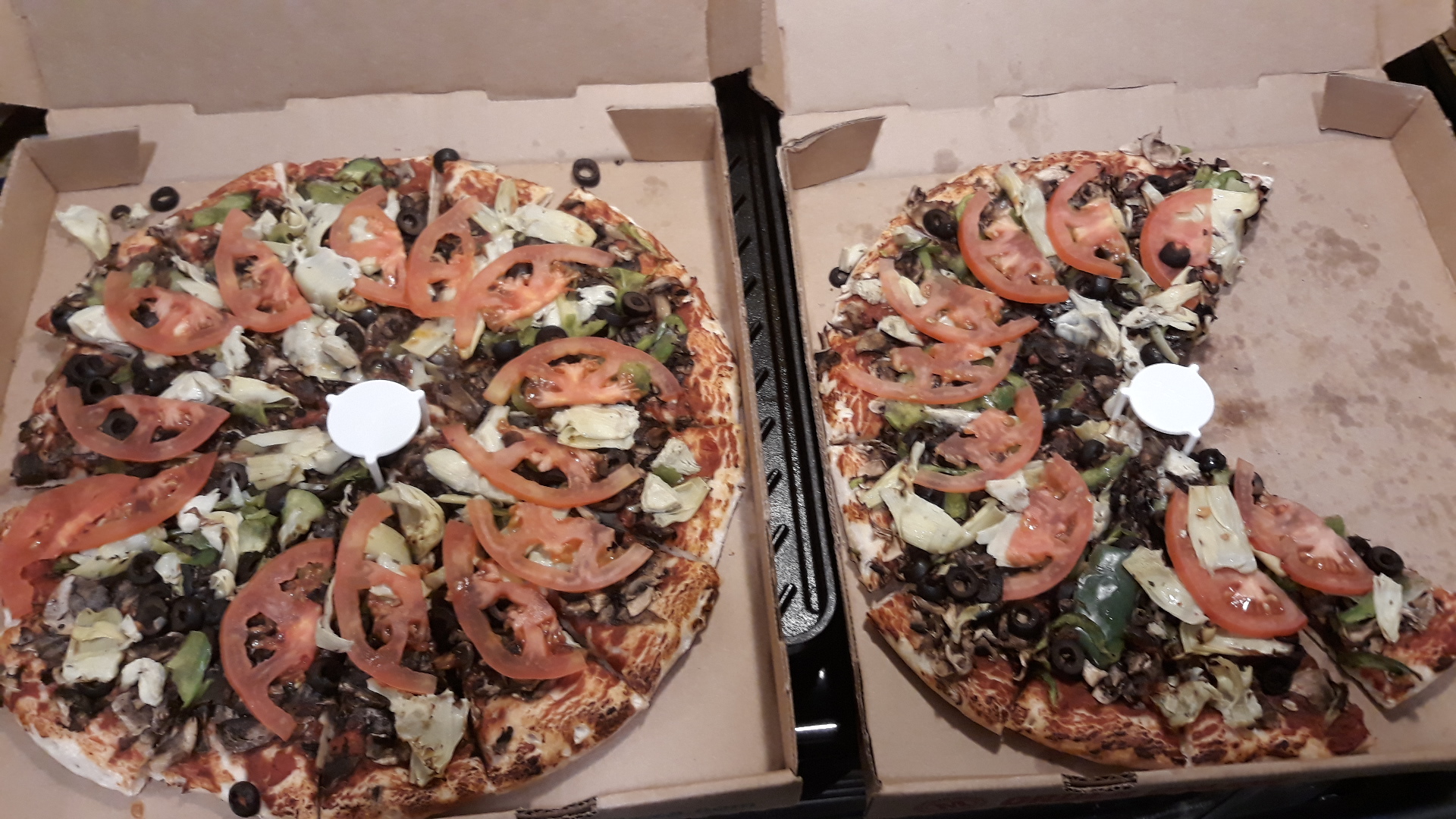 After paying the rent a day early, I decided to treat myself to pizza, since I couldn't get Blessed with a ticket to the Superbowl & a George Kittle Jersey (#85). While looking online, a great BOGO coupon to Mountain Mike's Pizza stuck out to me. To my surprise, this proved to be a great decision. You see, I'm vegan and very picky about patronizing restaurants. Long story short, the Mt. Veggiemore (with no cheese of course) was my choice. Let me tell you...it was amazing! This pizza was loaded with with great toppings like mushrooms, black olives, artichoke hearts, bell peppers and fresh sliced thin tomatoes. The taste was great! Normally vegan cheese is added to it when I get home; not needed in this case. Staff was nice; the best part was a young lady that works there, used to be a vegan. God was really smiling on me today.😊 Research was done to make sure there were no dairy 'slide ins' in the dough or ingredients but she also shared her experience about the pizza with me. My order was placed to go; took around 15 minutes or so for me to be in and out. Price point is second tier, but worth the money. Google search or go online to find a coupon for their brand pizza. That's what I did to get the Bogo. You figure 14 slices w. 2 pizza's cost me $27 and change AND it sits well cold- Not a bad deal. Hopefully you will get the chance to visit this location (in Hayward off Harder Rd). The pictures that are listed are the actual ones from this night 1/31/20 (6pm). I love finding great places that respect the vegan patrons. Thank you again staff at Mountain Mike's you made this a great experience. Btw- I had extra sauce on the side, but did...