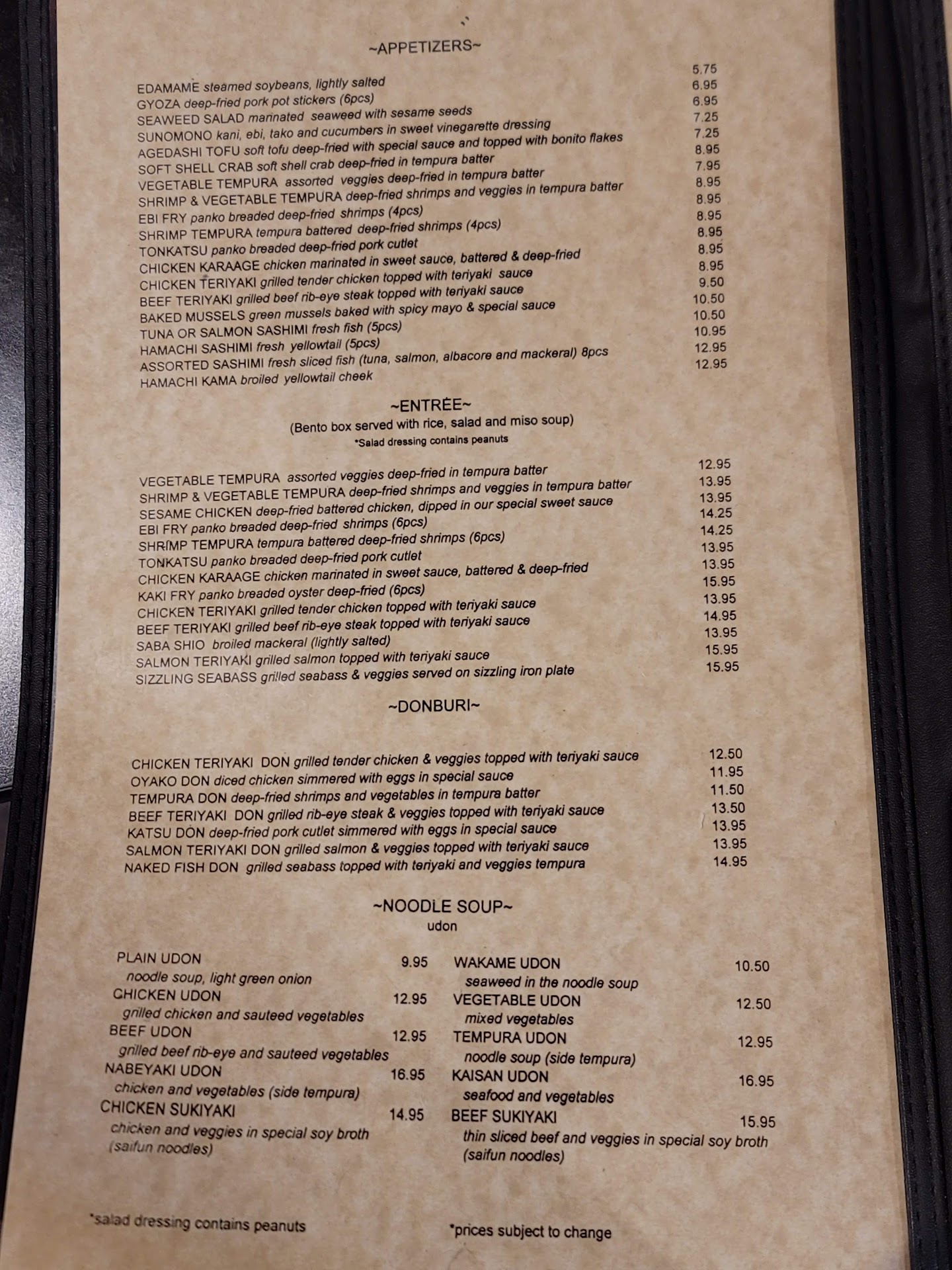 Read moreThe food was ok, not the best, more like affordable, had them couple time. Last night we have some sashimi and some rolls, my wife and I had them, but I didn't take the salad, my wife later the night had belly ache, suspecting food poisoning, only guess was, I didn't take the salad that came with the sashimi, we both ate the same things except the salad, maybe the salad not clean? I don't want to blame so I still kept the 4 stars, the portion was a lot bigger in the past and was way cheaper, now the portion became smaller, price went up, I had more choice around my area now, can't blame them but it is what it is. Also not sure if miso soup is only for dine in but I ordered the combo but didn't have the soup on togo order, no big deal though but would be nice to have. And here are the menu for people's...