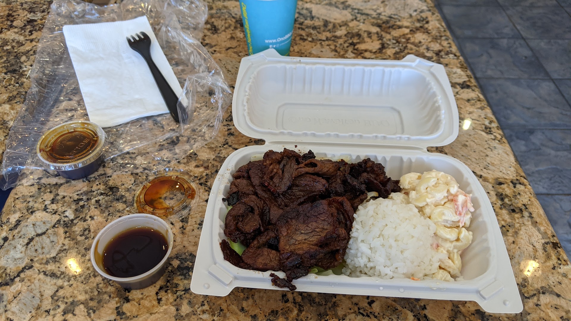 My favorite to order is fish and shrimp. It comes with macaroni salad, cabbage and rice. The cabbage is on point. Two scoops of white rice are plain but I like it like that. The fish and shrimp have enough flavor and seasoning to compensate/compliment the meal. I'm not a fan of macaroni salad unless its family so can't not fair to judge this one. No one macaroni salad could compare not even Gordon Ramsay. I'm just saying, when you like something you like it. I recommend this place. Great chain, haven't been disappointed yet plus food is always hot. It's still hot on the drive home. That's a win in my book. Especially when you have a hungry family waiting and you had to stay...