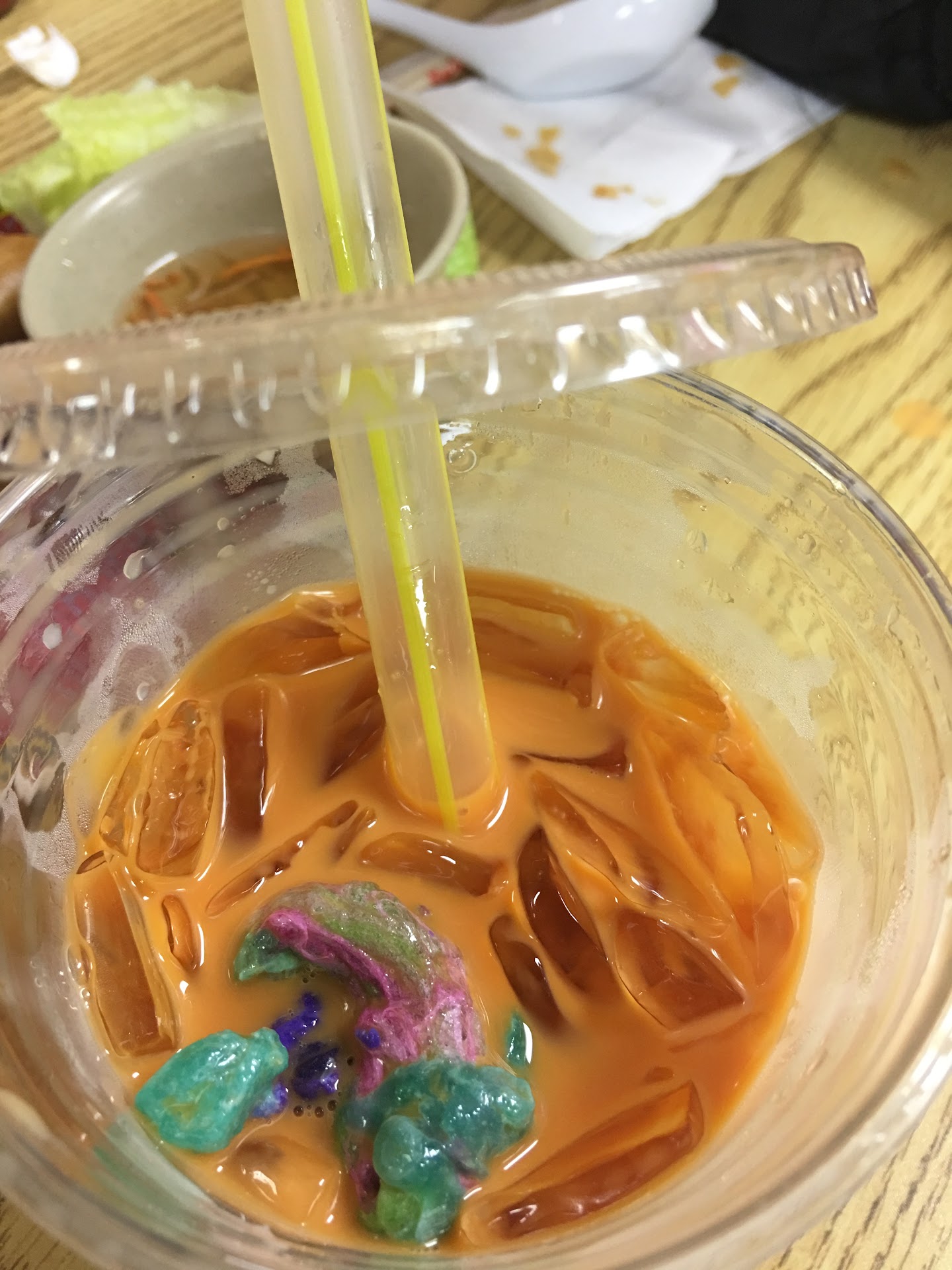 Read moreCompletely disgusted! They served us with this colorful-melted-plastic-looking inside the thai tea that we ordered!My husband find it early before we finished the drink but still we already had a few sips.We already ingested whatever chemicals/germs / nasty bacteria it has inside. We called the lady and seems she is the owner and herself could not believe what she saw and hurriedly covered the tea with her hand and said “Oh my God sorry i will change your drink!”. And we said Nooooo and refused to get any drink at all. Then she came back explaining they figure it out and told us it was a couple of candy played by one of the kids that was placed in the container of ice for drinks..Until we left the place they keep saying sorry to us. Until now i feel nauseated. They are so irresponsible in making sure the food that they served is clean. The restroom is very filthy. We did not even finished the pho that we...