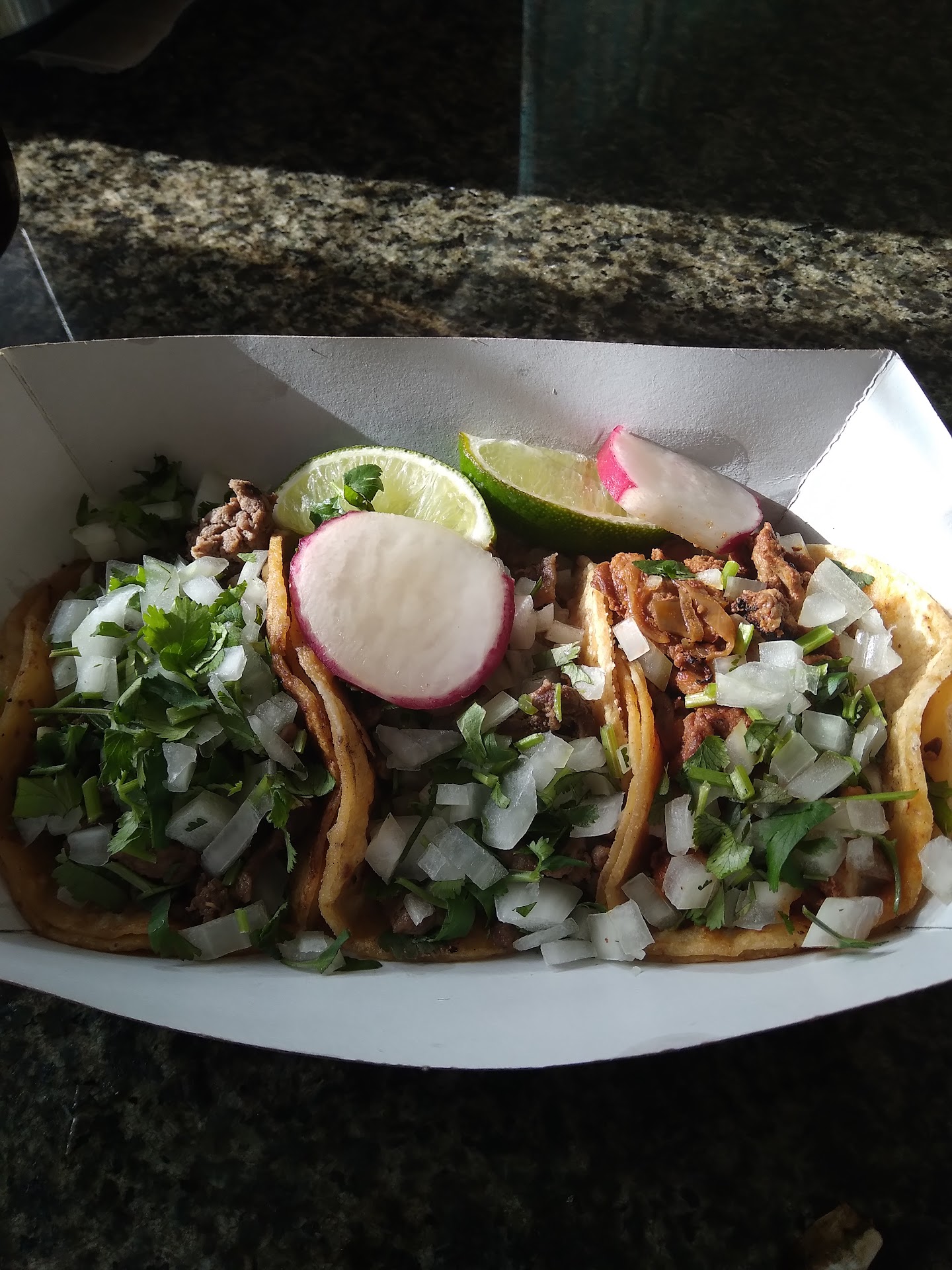 Cons: Certain meats costs more but is not noted on the menu so I felt a bit blindsided when I ordered. I got lengua tacos and each taco was $1 more cause it was considered a special meat. Made each taco almost $5 at that point. Also the lengua was so bland and flavorless; just tasted like it was boiled in water. Again, get the al pastor instead. Also, chips were store bough quality rather than fried in house.