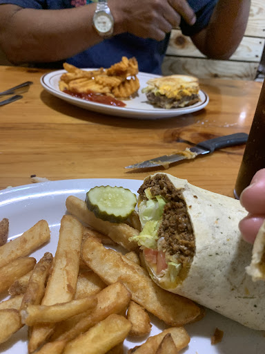 Read moreWe were camping and randomly stopped here. There are two separate dining rooms. The big dining room has a much more inviting atmosphere. We were seated in the corner back booth of the small dining room upon entry. Atmosphere in that room wasn’t as appealing. It was very loud. The waitresses were very loud and the customers seem to speak very loud in that room. A few regulars come in which might be part of the reason. I wait staff were very pleasant and greeted us right away. They have quite a large menu with a variety of options ranging from breakfast to lunch to dinner. The burgers and wraps are not served with anything. Fries and waffle fries were extra. The food was hot and served quickly. One of us ordered a patty melt on white bread. It was quite tasty and the waffle fries nice and crisp. The other of us ordered taco wrap. It really didn’t have much flavor it was quite bland as was the salsa served with it. The wrap shell however was very moist and lite which I appreciated. The steak fries were plentiful. Cost was affordable. Parking a bit tight but plenty of spaces. We probably...