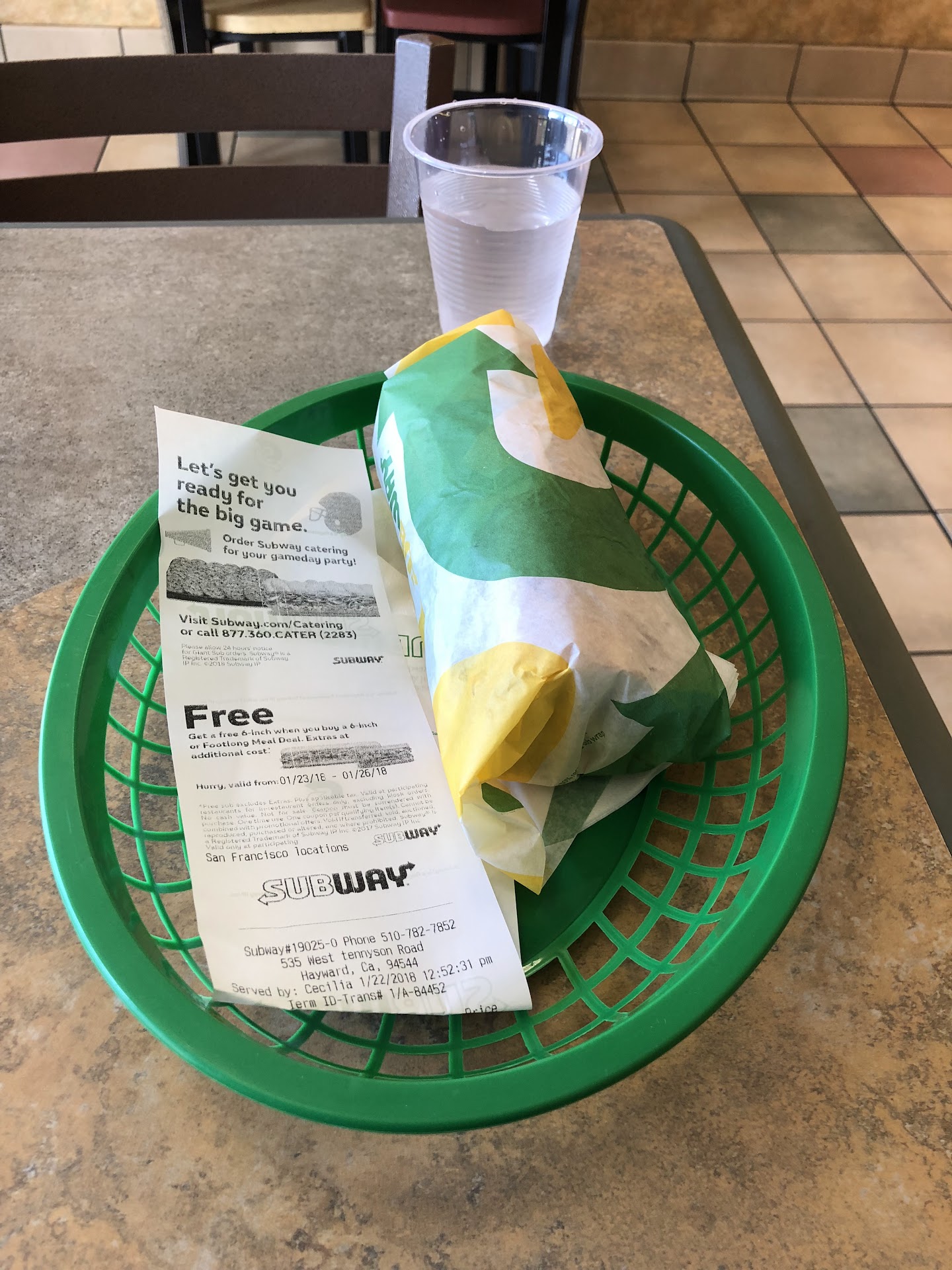 Read moreFood was good young lady working was sweet and nice..only problem was the older lady who came in when this girl had 5 footlong sandwich she made the lady question me about my coupon which was 3 subs for 19.99 saying chicken bacon ranch wasn't included in coupon..I've ordered multiple times same order at mission location no problem she was still screaming in another language at this girl for no reason smh not professional at all.also coupon only excludes the...
