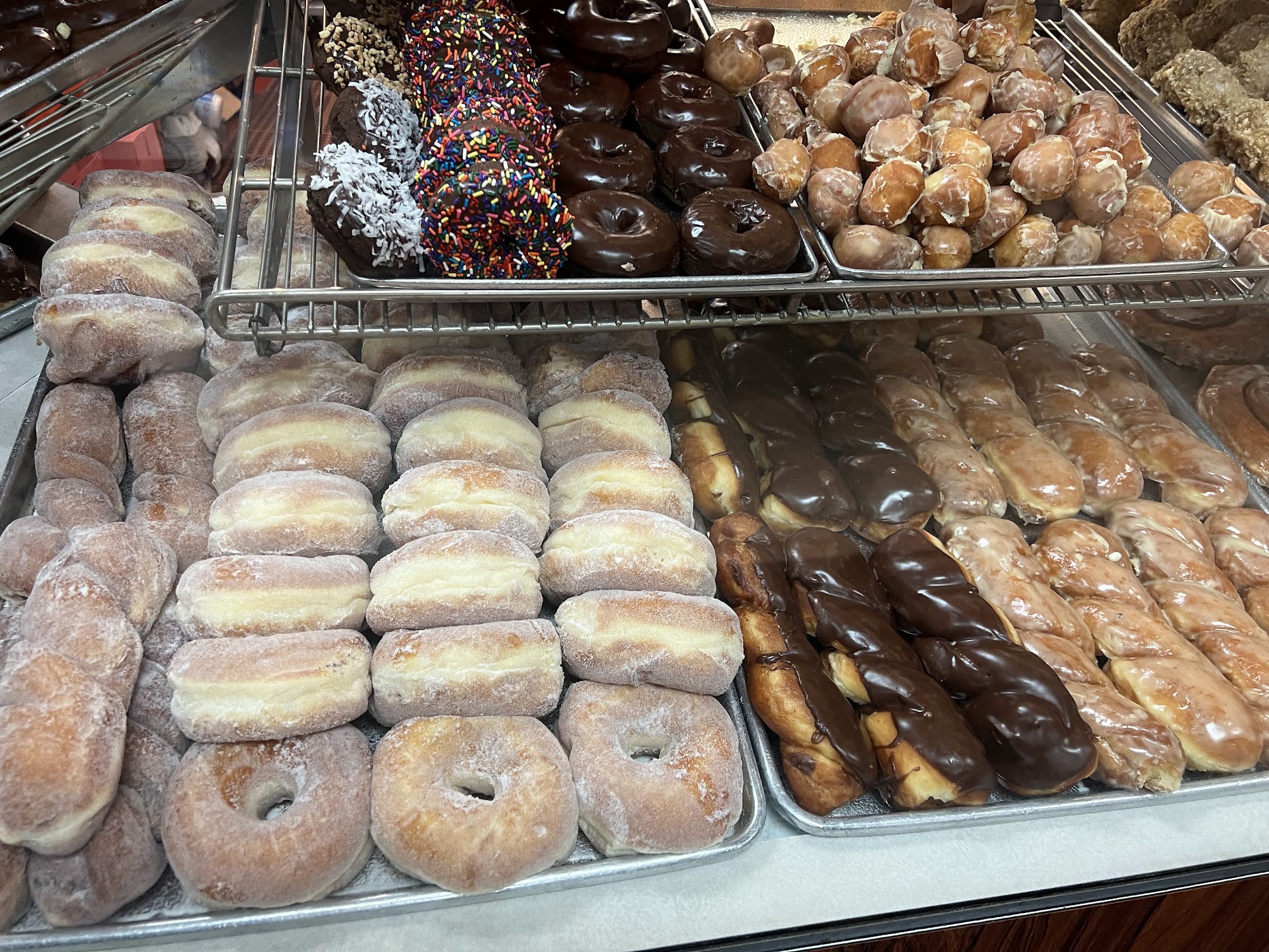 I try not to eat donuts anymore.... ( ; But went I splurge its only World's Fare!!! Their donuts are the best in the SF Bay Area! 😋 On my last visit of weakness, I had the apple fritter and 4 custard filled cream puffs. My favorite is the custard filled donuts holes but I got there too late. They were all sold out at 10:30 am. I've never had a bad experience with any aspect of this donuts shop. They are busy because they're good. Expect 5 to 10 people in line at any time, but the line moves fast because of fast friendly people behind the counter. On my 1st visit 3 years ago I mentioned it was my 1st time there, and they had too many choices. They gave me a free hot glazed & a couple of custard filled holes. I was hooked. 5...