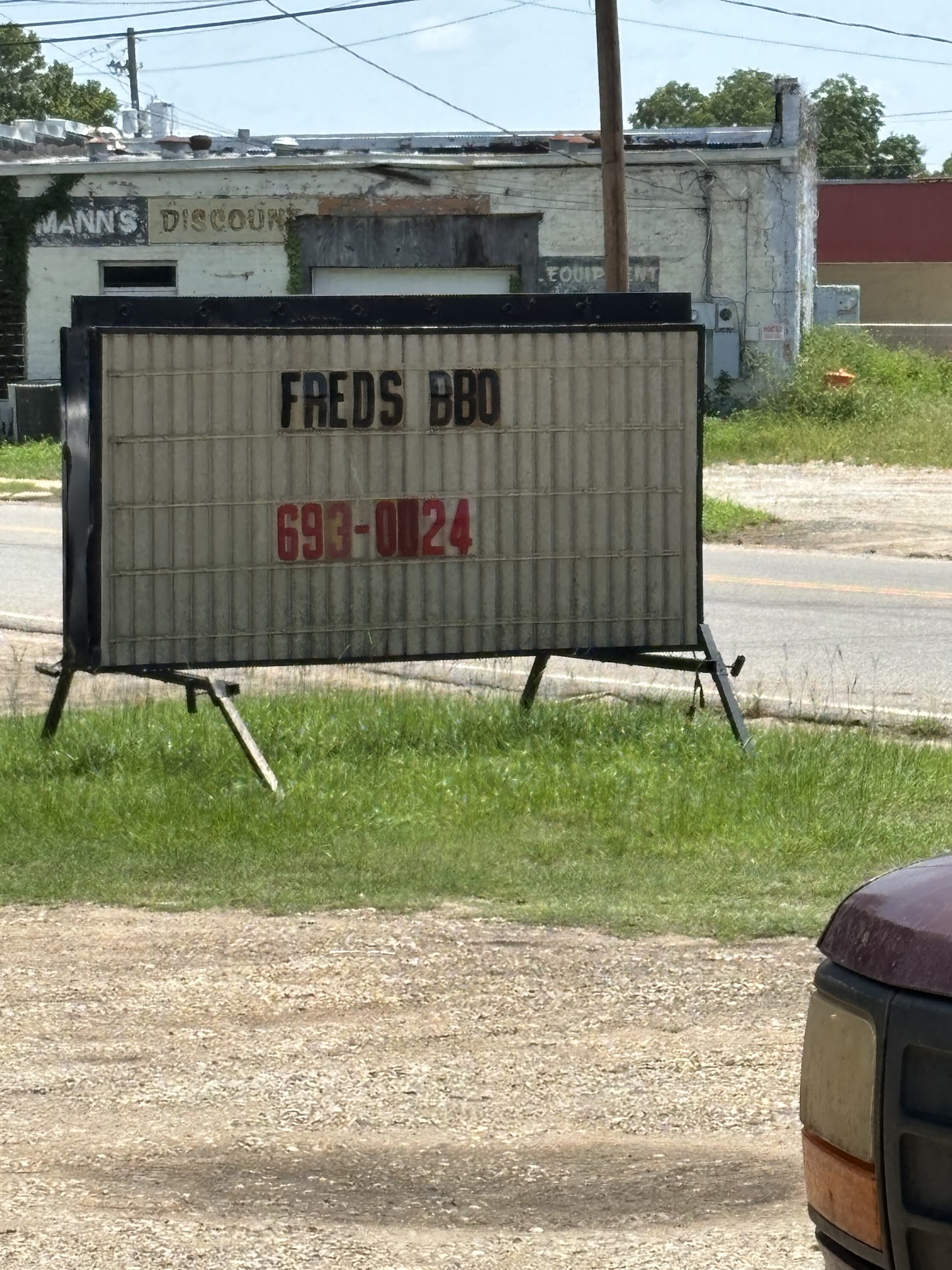 Read moreYall need to check out this gem! Food was great, service was even better! We were passing through on our way back to Georgia from PCB and Fred’s did not disappoint! We ate on the little closed in porch, but many people were grabbing and going!The portions were insane and everything was hot and fresh! Sweet tea is homemade and they will top you off before you go! Stopping at Fred’s is a MUST! We will be...