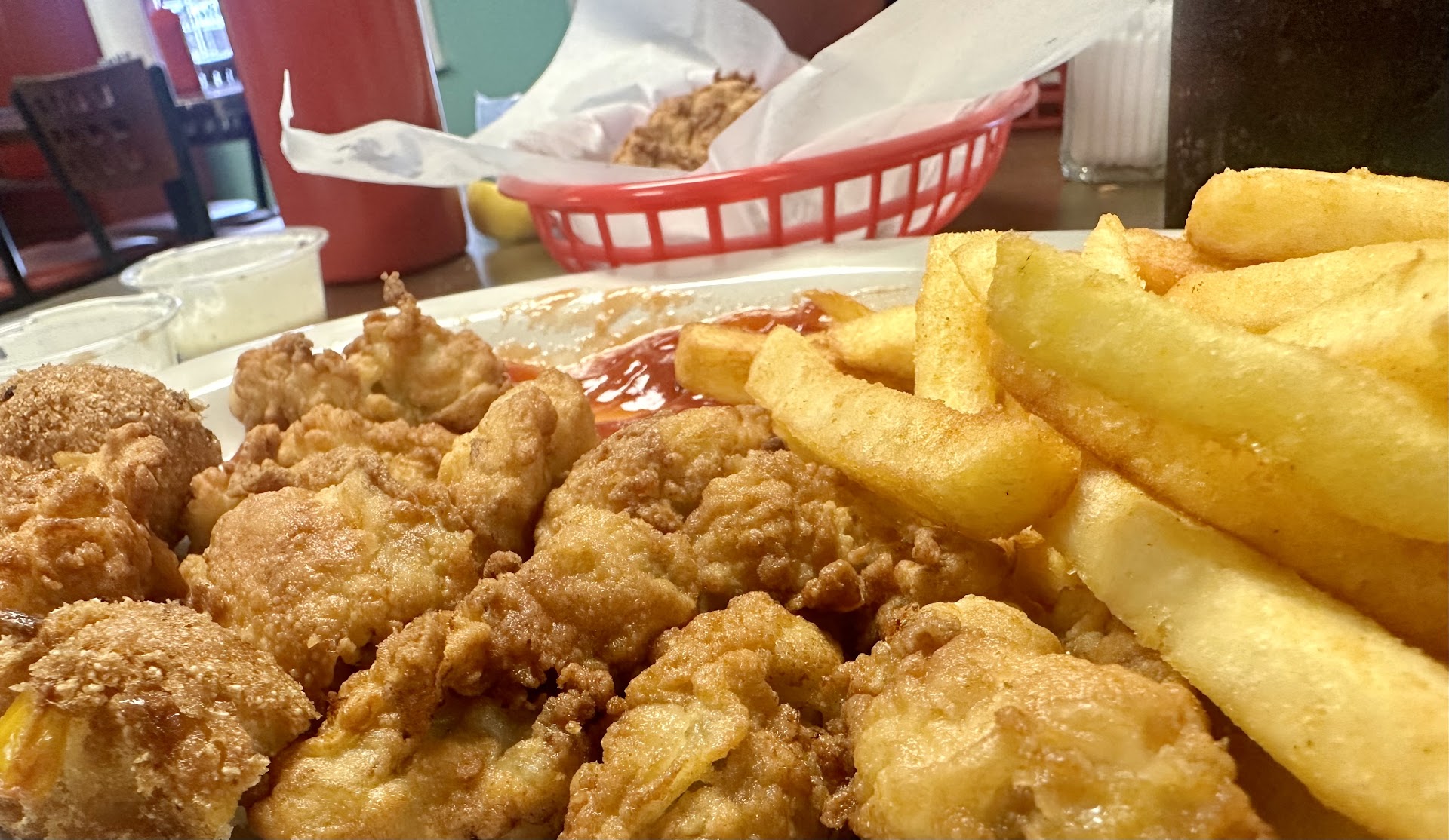Read moreTerrible, will not be going back. Not clean at all, the bathrooms are nasty. No updates done from when it was Big Mike's except painting it an awful turquoise blue. NO atmosphere at all. Ordered hamburgers they were absolutely terrible. The patty was in pieces, flavorless and smashed on to a cold old bun. Pieces of the burger kept falling out of the bun. I gave up trying to eat it and ate some of the fries that were just OK. My husband had a hot bottled beer for $4.00. Kid's meal cost $8.00 with a soft drink. I drank ice water. Not many customers were there so the food should have been hot and fresh. No one came to check on us after food/drink delivered. The two employees we saw were standing inside the check out area on their phones, drinking and eating. We did not eat over 1/2 of the food. We all had to get something to eat after we got home. Will NOT return. I try to support the local restaurants but as a local, I will not return there. I wasted $45 on food that was worse than a fast food...