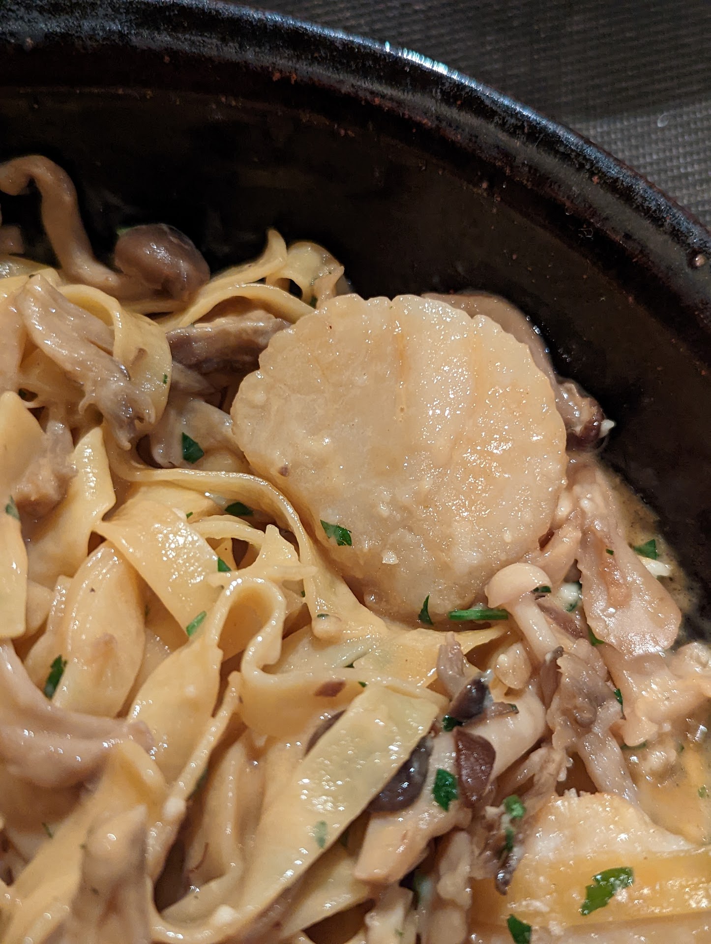 Read moreWe have vacationed in Healdsburg multiple times and had never visited Baci, so we made a point to dine there this trip. This restaurant is very clearly a place where locals go to get a decently priced meal (as evidenced by 85% of the people walking in warmly greeting the owner at the door), which is fine but if you are on vacation looking for a stellar dinner worthy of your time I'd look elsewhere. We started the meal with the Burrata, which was not pleasant...the leek mixture (which was very much under seasoned) was warm & gave the cheese a very odd lukewarm, undesirable texture. My husband had the tagliatelle carbonara, which was the best thing we were served honestly...but the sauce was very thin & the side of chicken he added to it was very dry. I ordered the tagliatelle with pan seared scallops & sauteed mushrooms. As evidenced by my photo, these poor scallops never saw any salt, butter or a pan. Neither had the mushrooms. It's as if they threw everything raw in with a sauce and cooked it like a quick stew. Totally disappointing to see such nice ingredients treated this way. Service was fine but honestly you probably have better food at a local Italian joint wherever you are from. There are many other restaurants in Healdsburg & the surrounding area that are more worthy...