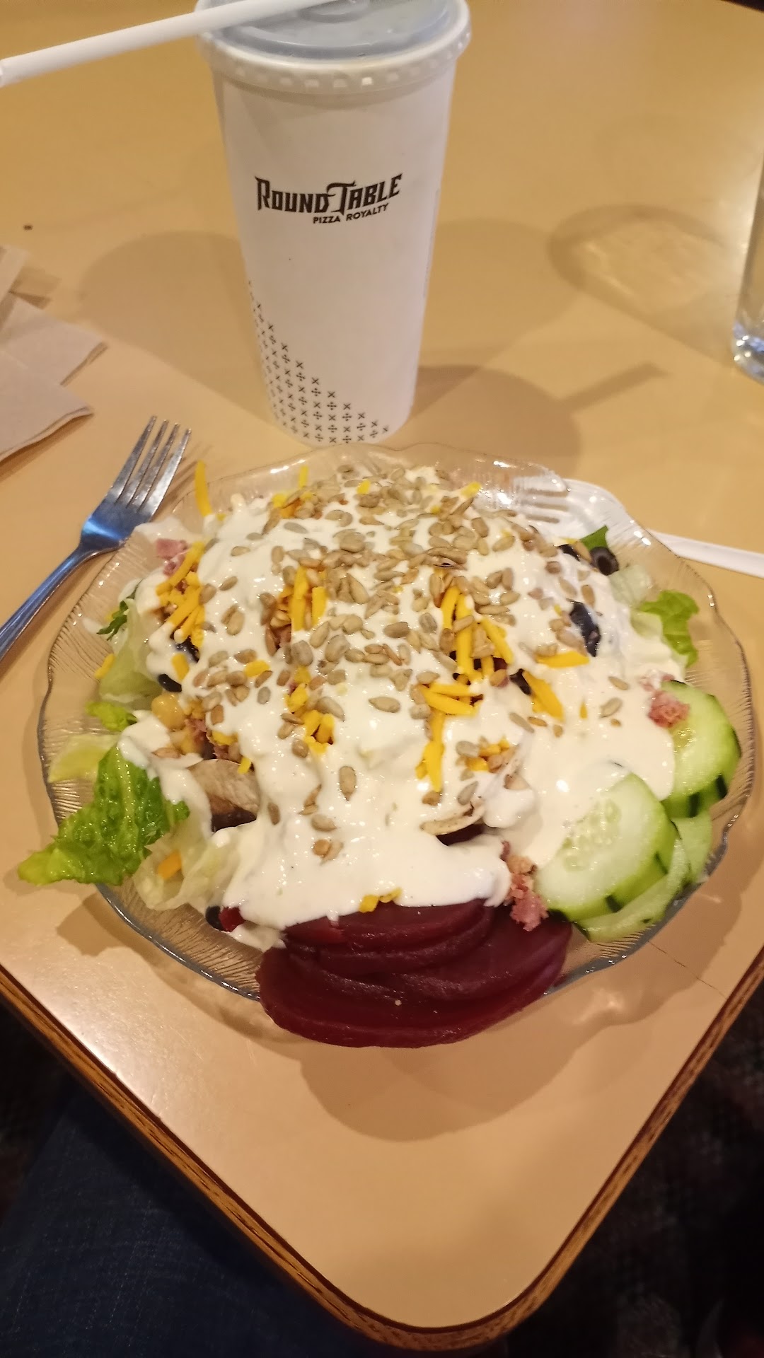 Read moreRoundtable is one of my favorite pizzas and it was good pizza here. The salad bar looked nice, fresh and tidy but not as many choices as other round tables I've been to. However, the employees made it rather uncomfortable to eat at the restaurant. There was a group of young girls (including the one that took our order) that all seemed to work there sitting and standing around a booth on their phones and chatting. It made it feel like our family and others who came in interrupted their social time by...