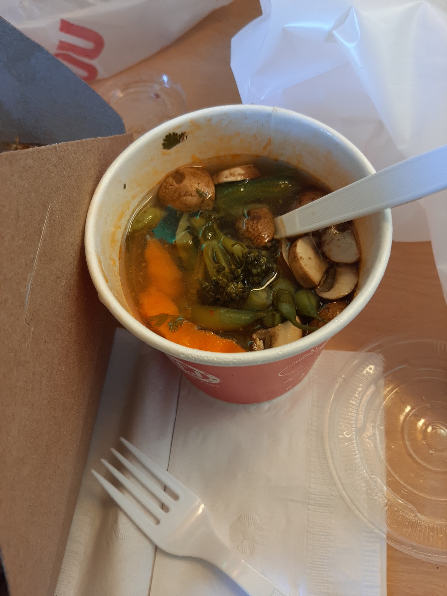 Read moreFor years, the Thai Orchid has been my favorite restaurant in Healdsburg, where I've especially enjoyed their coconut soup, curry noodle soup, tofu larb, and eggplant with basil. However, yesterday, when I ordered the curry noodle soup with fried tofu, I was given a bowl of soup with chicken. I immediately pointed out the error (after double-checking with my dining partner to make sure that my order had been clear), and stressed that I don't eat meat. I was brought what I believed to be a new bowl of soup with tofu on top.