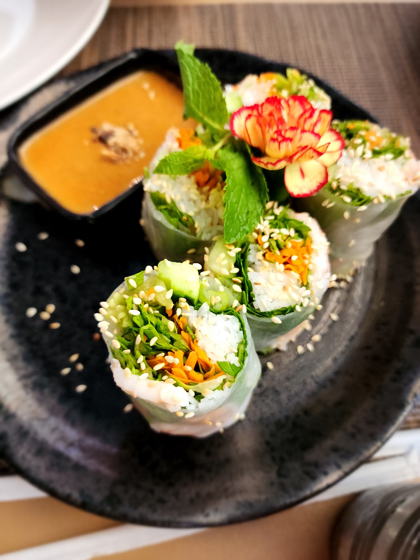 We also got summer rolls which had a great mix of vegetables, vermicelli, mint and shrimp. The presentation was amazing as well as the peanut sauce that came along with it.