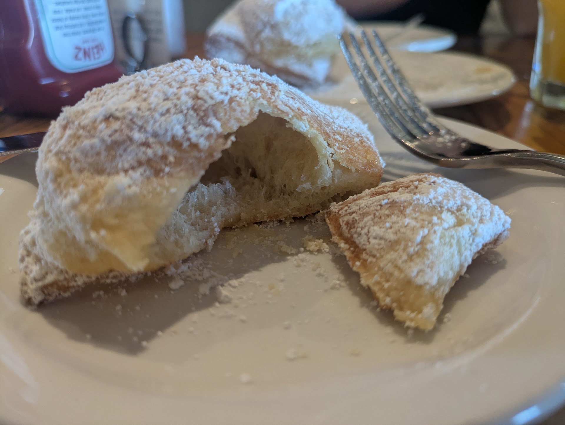 The beignets were perfect. Hot, fresh, and generously dusted with powdered sugar.