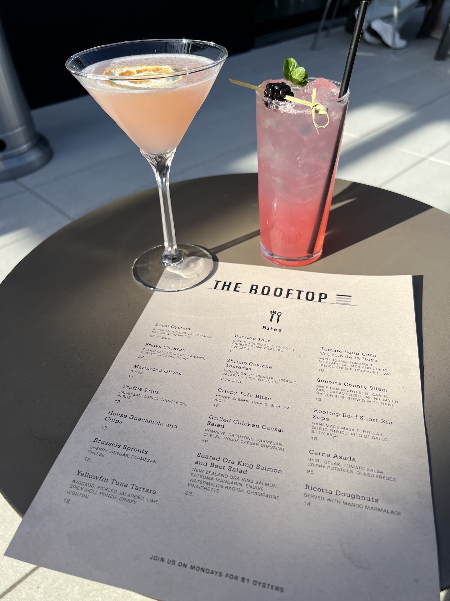 (+) Cute restaurant on the top of a converted apartment building, great view of the town and the mountains. (+) Lucky for us a reservation no-showed and we were able to get a table. (+) Dog friendly! (+) Pretty nice menu. Ceviche tostadas, sliders, tacos, fries. All looked very good and friends who ordered said it was good. You get a LOT of fries if you order the fries. Order to share! (+) Cocktails are good - I got The Sea and it was delicious. (+) Individual fire pits for tables - do pack for warm clothes; it gets chilly up there, and it was REALLY windy when we were there. They lost like 5 flower vases that had been blown over.