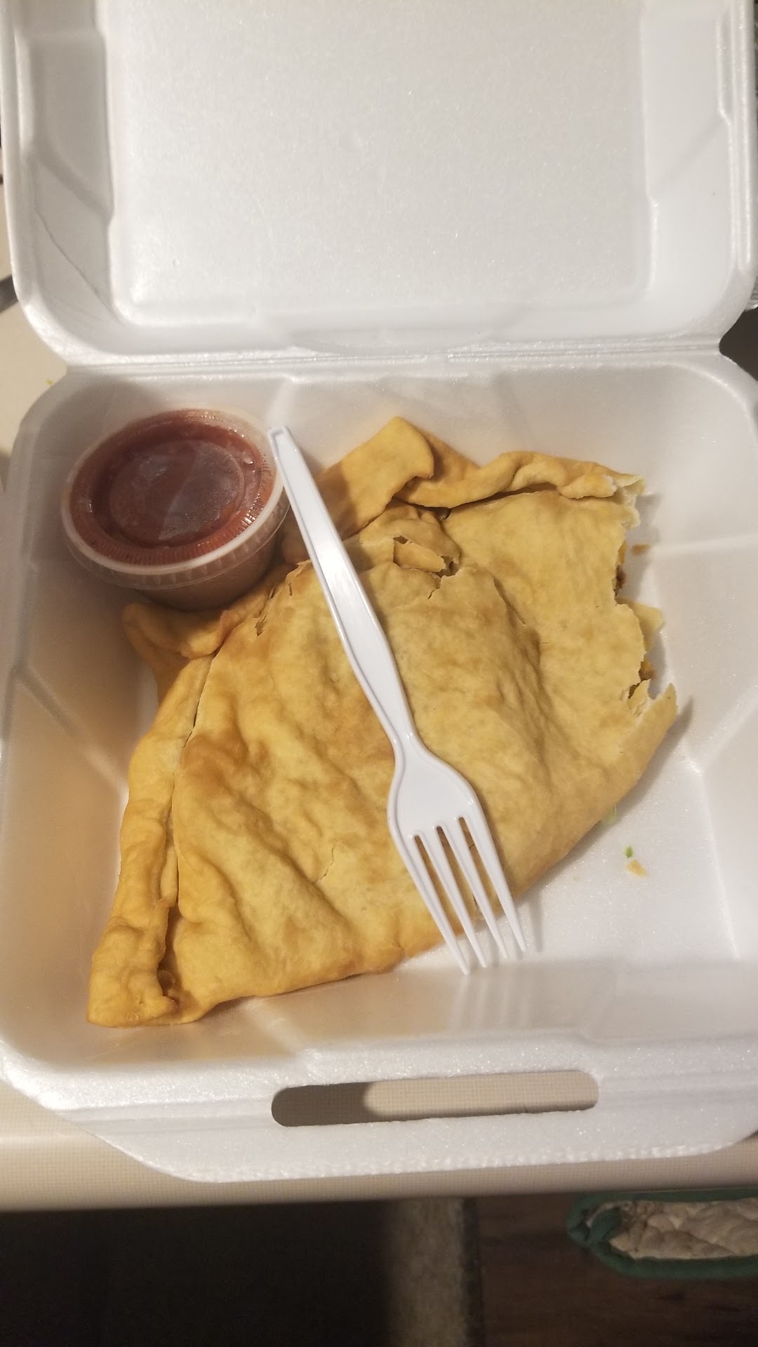 Our food was brought out rather quickly and the large sopapillas which dwarfed our plates looked pretty appetizing. The deep fried meat pastry was covered in shredded lettuce and diced tomatos. For a moment, my doubts about this restaurant fleeted...until I took a bite. The pastry dough itself was clearly a special, homemade recipe which had a sweet, flaky taste. This was clearly the reason why La Paloma has positive reviews. Unfortunately, the handcrafted dough-pastry was filled with the most generic, store-bought, tasteless fillings. All I could taste was Colby cheese. I could not taste the beef at all and the beans tasted straight from a can. I asked the waitress if there was hot sauce I could dowse this abomination with and she pointed to the red towering tube of blandness. I asked if there was anything hotter, and she brought out a green plastic bottle which was made with jalapeños. The green salsa actually had some heat and helped cauterize my taste buds from the terrible taste of the sopapillas. I could only eat a third of it and my friend ate about half.